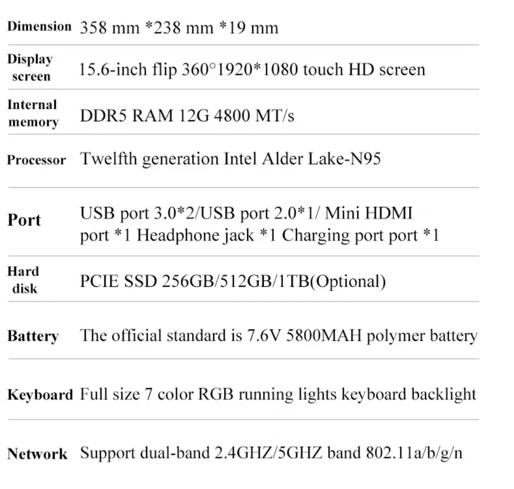This product is produced by ZeeTec. It is high quality product at affordable price. It comes with 1 year international warranty. Why paying more while you can get it in less price with the same quality. We provide excellent after sales customer service. Experience the power and versatility of the 16” 360 degrees flip 2.5K FHD touch screen laptop. With its Intel N95 processor, impressive 12GB RAM DDR5 and spacious 512GB SSD storage, this laptop offers lightning-fast performance and ample space for all your files and applications. The stunning 2.2K display delivers crisp and vibrant visuals, ensuring an immersive viewing experience. Designed with portability in mind, this sleek and lightweight laptop allows you to work or play on the go with ease. Enjoy seamless multitasking, smooth video playback, and effortless content creation with this cutting-edge device. Upgrade your computing experience today with the 360 degrees flip 2.2K laptop.