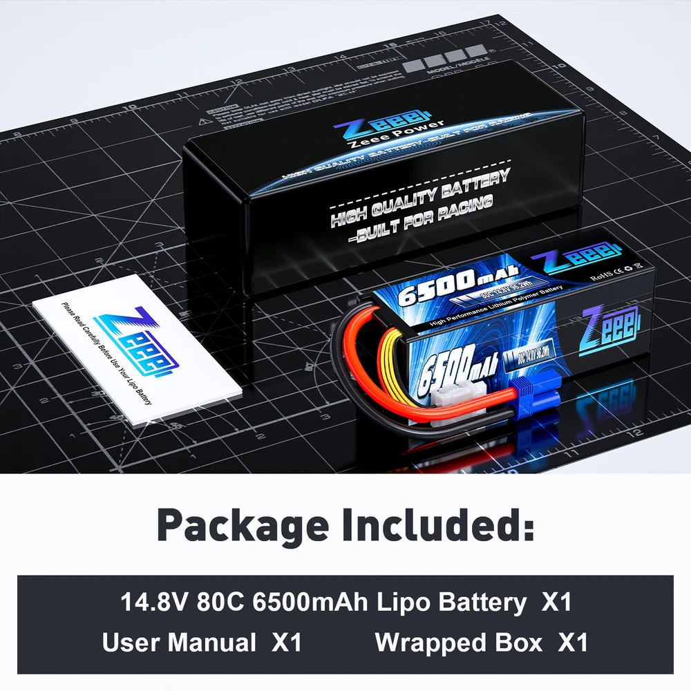 7.4V 2S 7.6V 2S 11.1V 3S 14.8V 4S 18.5V 5S 22.2V 6S Safe Bag zeee_official_store 7.4V 2S LiPo Battery 7.6V 2S LiPo Battery 11.1V 3S LiPo Battery 14.8V 4S LiPo Battery 18.5V 5S LiPo Battery 22.2V 6S LiPo Battery Zeee LiPo Battery Bag Other Zeee 4S Lipo Battery 14.8V 6500mAh 80C EC5 for RC 1/8 1/10 Scale Vehicles Car Zeee 14.8V 6500mAh 80C 4S Lipo Battery RC Battery High Power Battery with EC5 Connectors for RC Cars, RC Truck, RC Airplane, RC Helicopter, RC Boat Specifications: Brand: Zeee Voltage: 14.8V Capacity: 6500mAh Discharge Rate(C): 80C Configuration: 4S1P Connector Type: EC5 Connector Balancer Connector Type: JST-XH Length: 138mm/5.43inch Width: 47mm/1.85inch Height: 48mm/1.89inch Weight(dev.10g): 612g/21.6oz/pc Compatible with: * Zeee 14.8V 80C 6500mAh 4S Lipo Battery specially designed for professional 1/10 scale and 1/8 scale RC car hobby models such as: Emaxx, Bandit, Rustler version, Losi, Team Associated, etc. * It also could be used for RC airplane, RC helicopter, RC boat, drone, FPV. * For RC battery, only if the voltage, dimension and plug match, then it will fit. Safety Notes: 1. To ensure safety, please check and confirm lipo battery surface and voltage is normal before using. 2. If the new lipo battery won’t hold a full charge or loss the charge very quickly in short time, please use Professional lipo battery Charger to charge and recycle several times first. For most lipo battery, the safest charge rate is 1C - 2C. 3. Never Over-charge above 4.2V per cell and Over-discharge below 3.0V per cell. (Normal cell voltage is between 3.7V~4.2V) 4. Never charge lithium polymer battery unattended. 5. If lipo battery has any problem, feel free to contact us via eBay message in the first time, we will offer you a proper solution. Package Content: 1 x Zeee 4S 14.8V 6500mAh 80C with EC5 Plug RC LiPo Battery Hard Case 1 x User manual 1 x Wrapped box About Us Payment Shipment Return and Warranty Feedback About Us Zeee Power established at 2011, which has grown to the leading manufacturer of RC lithium battery in China. Over the past years, we boast of more than 300 trained workers, 36 experienced engineers and technicians in RC lithium battery R&D solution to ensure that we provide high quality products and first-class services to our global customers. All of Zeee RC LiPo Batteries are designed with safe and steady formula of raw material, smooth and steady discharge curve and rigorous scientific quality control system, in order to ensure longevity and reliability. Our batteries are manufactured using the superior ‘stacking’ method, which provides you with reliable capacity and consistent power. Payment Payment should be Complete within 5 days after the end of the Auction. Non-paying winners will be filed for closing auction. Shipment 1. All items will be shipped to buyer's eBay address. Before you pay, please make sure your address on eBay matches the address you would like us to ship to. 2. All items will be shipped within 1 business day upon receipt of payment. 3. Items will be sent from USA directly, it usually takes approximately 4-7 business days to receive order. Return and Warranty 1. Our items come with 180-Day warranty. 2. Our warranty does not extended to any products that are physically damaged or that are not under normal operating conditions as a result of misuse or improper installation on the buyer/user's part. 3. This product comes with 30-Day Money Back Guarantee. 4. We stand behind every product we sell. If you're not pleased with your purchase, we'll be happy to make an exchange or refund. Feedback 1. We value your feedbacks, please leave your feedback and comment. 2. We will automatically leave positive feedback to every buyer who completed the transaction and left positive feedback to us. 3. Your better comments will be an encouragement for us to offer the better quality and the better service in future. 4. If you have any problems, pls contact us, we will try our best to help you to solve it.