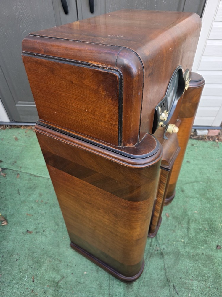 NR Hello, everyone! Welcome to toboss302. we are one of the largest console radio sellers on eBay! This radio needs to be electronically restored , Google search your local club they will get you in contact with someone that can do it , it's kind cheep under 100$ to get this running witch with double the current asking price, so I priced this to move Each radio has original wood as found condition and is cleaned up. We only deal with nice, presentable examples , my goal is to keep this hobby alive forever These radios are from the golden era of the 1930s. With the famous art deco design Now is your opportunity to have one shipped to your door , lower 48, only each box is customized by me and cost over 55$ and over 40$ in packaging I spend 2 hours wrapping each one by me This radio sounds amazing. Nothing else compares to it. The deep tube sound will make any song or station sound amazing. You can get a Bluetooth Transmitter on Amazon for under 40! So you can play your phone on this radio If the radio ever needs to be serviced, just search for your locial radio club, and that will direct you to someone easily Shipping is by ups, and I ship within 3 days of payment. Check out my outher radios on here. I have over 100 consoles, so I'm selling my doubles lol My prices reflect the current market of sold sales of this model and are usually under market value Thank you for booking