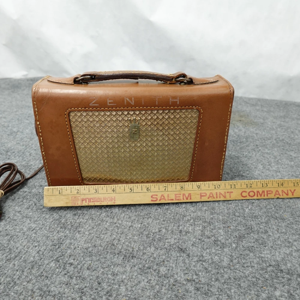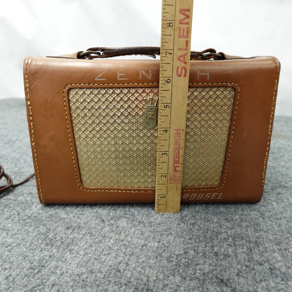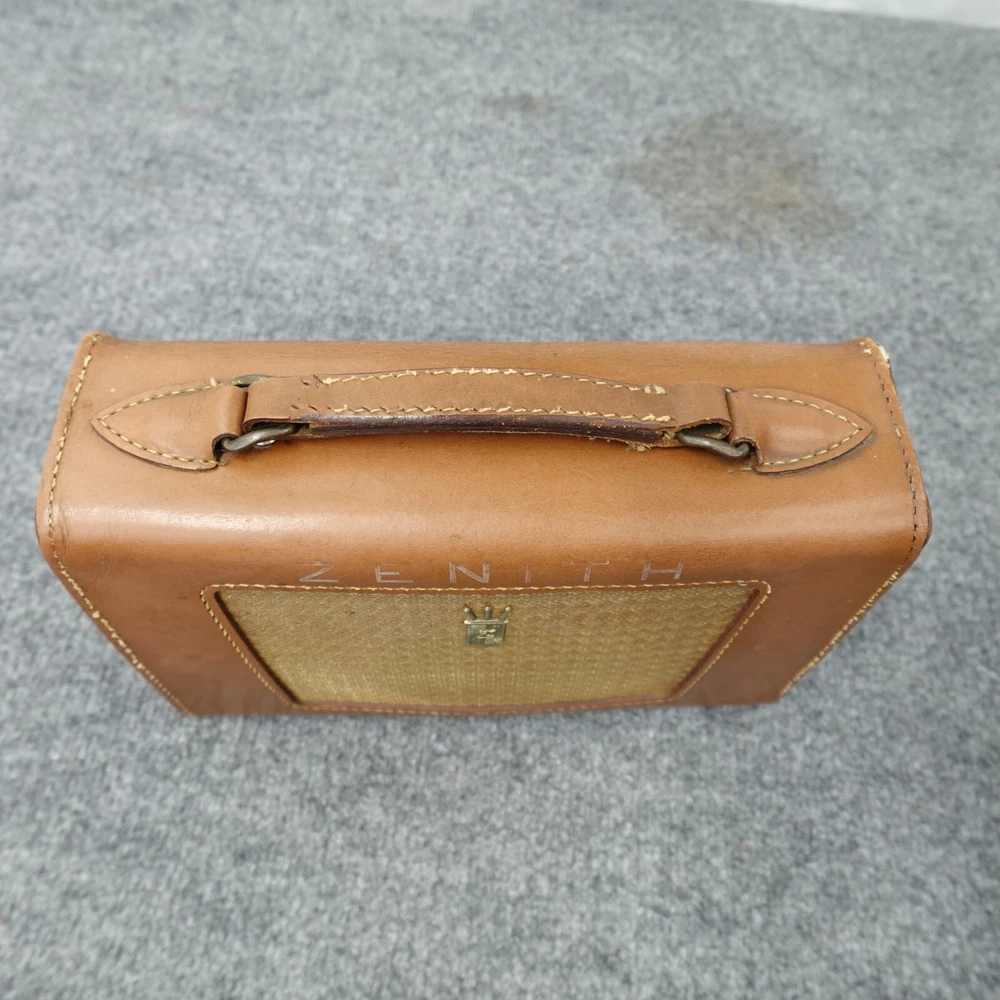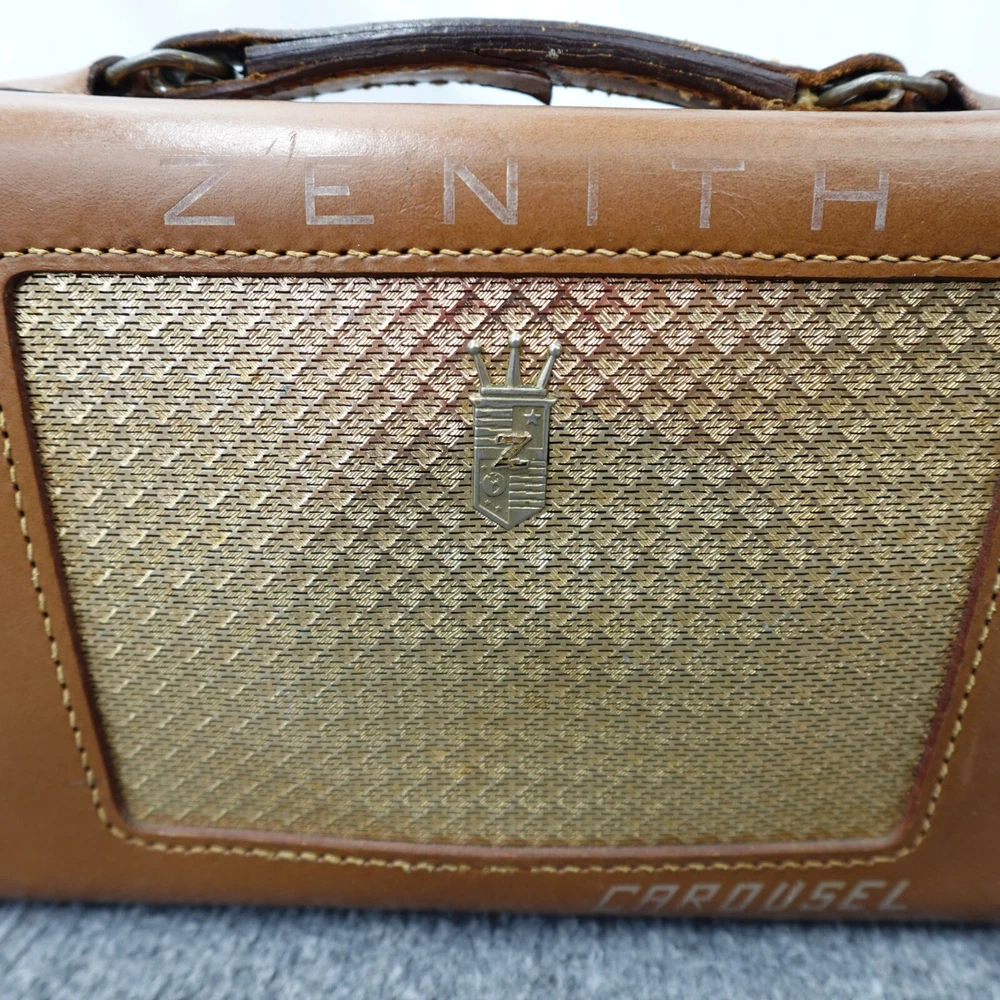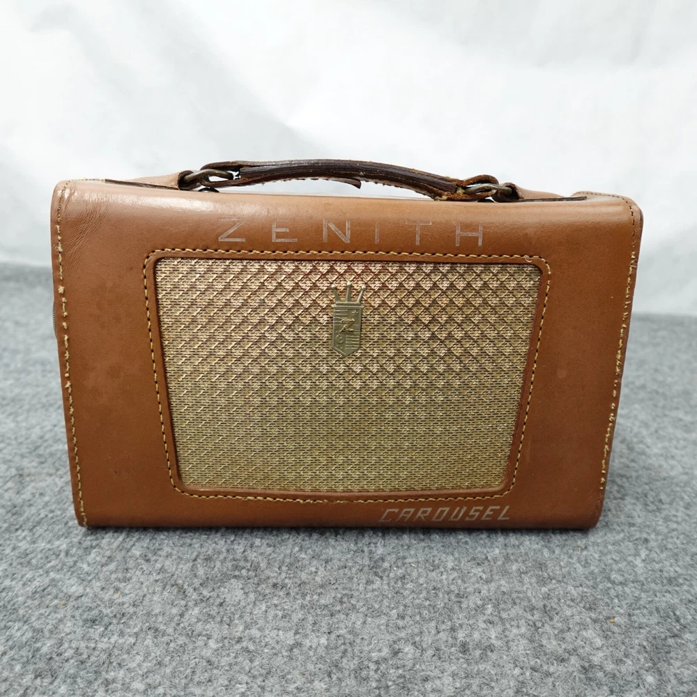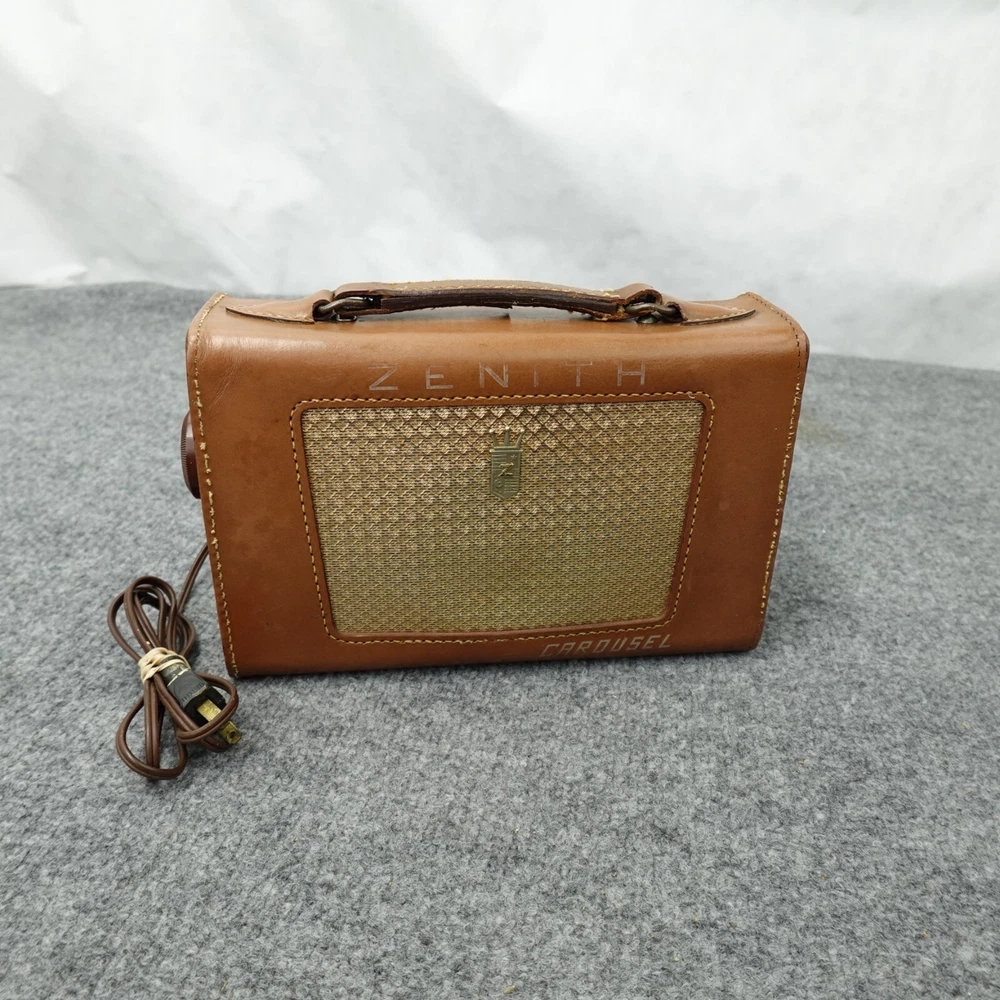 Zenith Radio Z404L Carousel AM Tube Leather Case Loud Volume Works MCM 1950s Vintage In good used condition, some scuffs and scratches. Nice patina, see photos. I will ship this item out via UPS Ground with a tracking number for confirmation Will ship in box with plenty of padding. I handle shipping every day of the week, watch for shipping updates! Check my feedback comments, I will protect your purchase for shipping. Please feel free to ask any questions you may have. I will often reply quickly, unless foraging for mushrooms :) Thanks
