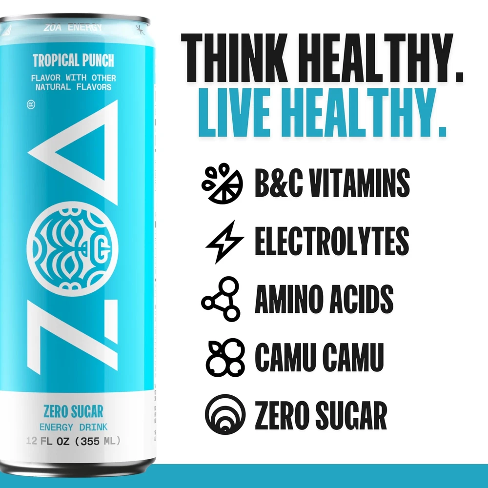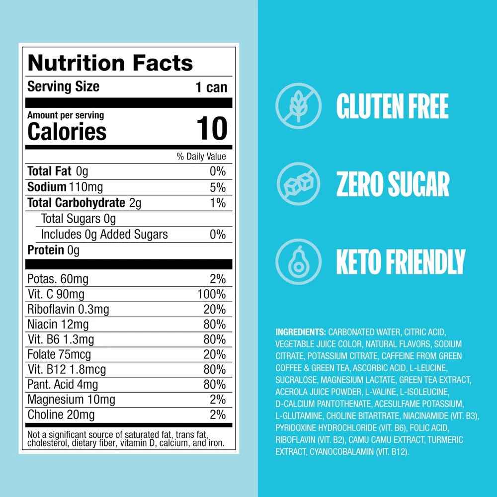 zero sugar healthy energy drink 's healthy warrior blend is packed in all 12oz & 16oz sugar free energy drinks. no jitters. no crash. just healthy, balanced energy. zero sugar energy drinks are packed with immune supporting c from ascorbic acid and superfoods camu camu and acerola. also has amino acids for muscle growth, electrolytes for hydration, and natural clean caffeine for sustained daily energy. why is the best healthy energy drink choice? antioxidants - superfoods that fight for you: camu-camu berries and acerola cherries, packed with c and power antioxidants that protect your cells and bolster your immune response. amino acids - we added elements to make your workout count: branched-chain amino acids to support muscle growth, electrolyte drink to keep you hydrated and choline to support metabolism. b drink - zero sugar energy drinks are infused with key vitamins to keep your mind and body focused on what matters: vitamins b1, b2, b6 and b12 to support energy. natural clean caffeine - we added caffeine from green tea and green, unroasted coffee beans to give the right kick of clean caffeine. FUEL SOMETHING BIGGER: Experience the power of our healthy energy drinks, fueled by caffeine from green tea, electrolytes, daily c, essential b-vitamins, and branched chain amino acids. ENJOY A NATURAL ENERGY LIFT: Our natural energy drinks use only caffeine from green tea extract and green coffee for balanced daily energy. SUGAR-FREE + FULL FLAVOR: Our sugar free energy drinks are crafted to delight your palate, providing an energy boost without the sugar crash. ADD TO CART now! 100% DAILY C: Boost your immunity while you energize. Each can of our energy drink provides 100% of your daily c needs. POWERHOUSE OF B-VITAMINS: Harness the benefits of six essential b-vitamins in every can of our energy drinks, supporting overall wellness. HYDRATE AND REPLENISH: With essential electrolytes, our electrolyte drinks keep you hydrated and ready to tackle your active lifestyle. EMBRACE THE POWER OF VARIETY: With eight tantalizing flavors, our sugar-free energy drinks offer a symphony of taste that never compromises on quality. TREAT YOURSELF, GUILT-FREE: zero sugar energy drinks are the perfect blend of taste and , making it a guilt-free treat for your active lifestyle. FRESH LOOK & NEW FLAVORS: Our energy drink look and formula got an upgrade; We refreshed our brand both in and outside the can; Now available in eight delicious flavors and convenient size options, as well as conveniently packaged in single-serve 12 ounce or 16 ounce cans In a 12 pack case for easy on-the-go consumption YOUR HEALTHY LIFESTYLE CHOICE: Our clean energy drinks seamlessly blend and energy, making it your ideal choice for a busy, -conscious life.
