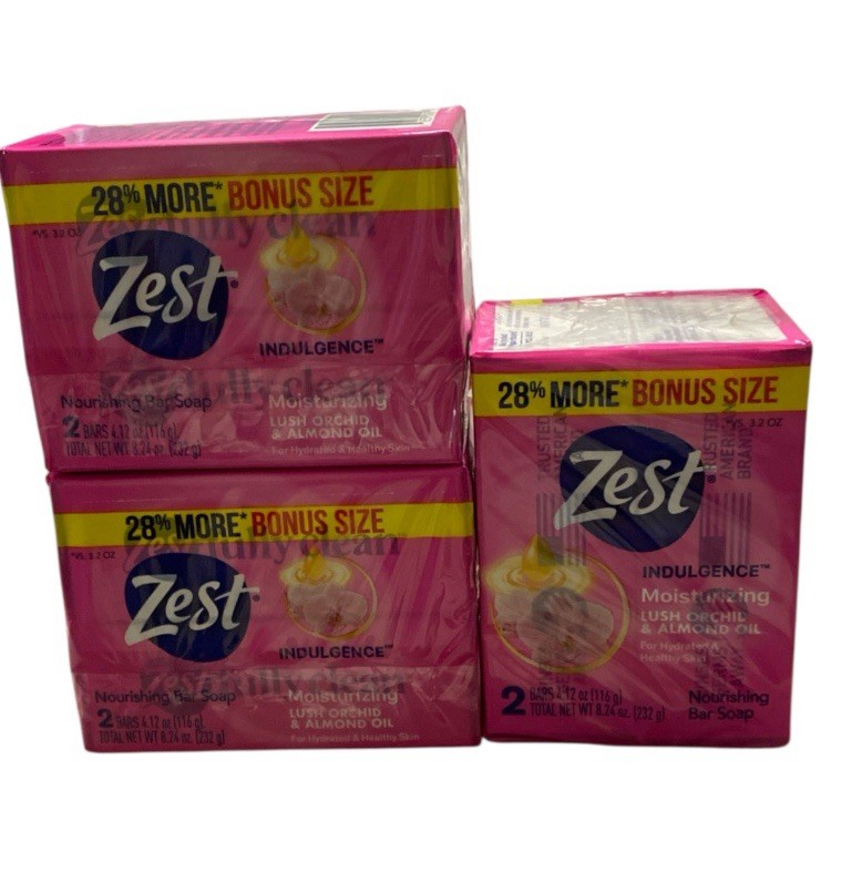 Zest Lush Orchid & Almond Oil Moisturizing Bar Soap 4.12 Oz Lot Of 3.