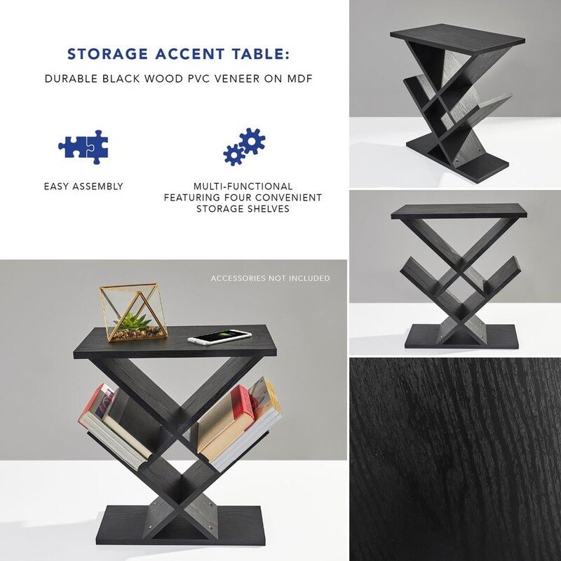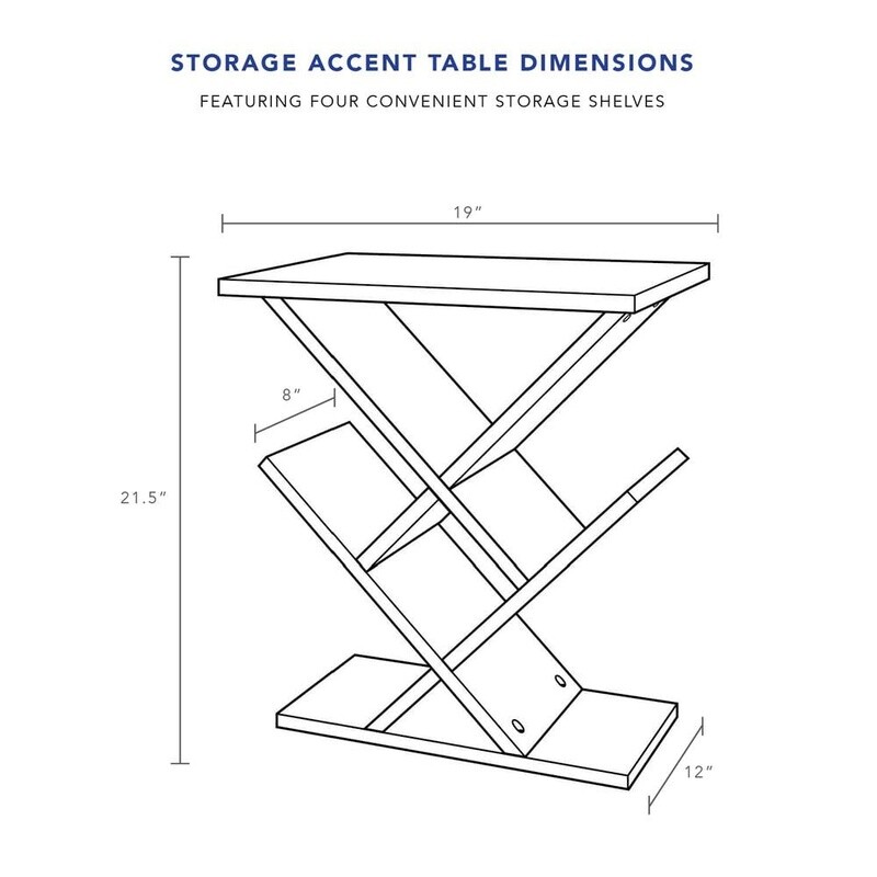 You may also like Modern Coffee Table Criss-Cross Design Easy Assembly Ample Storage Rounded Edges 56.65 USD 59.63 USD Free shipping 5% off Parsons Coffee Table Minimalistic Design Walnut Finish Indoor Use Easy Assembly 39.97 USD 42.07 USD Free shipping 5% off Modern White Multi-Use Coffee Table 39"x19" Easy Assembly 50lb Capacity 47.89 USD 50.41 USD Free shipping 5% off End Table Set Open Storage Shelf Organizer Coffee Desk Work Station Nightstand 48.16 USD 50.69 USD Free shipping 5% off Lift Top Coffee Table Hidden Storage Open Shelf Rustic Indoor Livingroom Decor 213.51 USD 224.75 USD Free shipping 5% off Slim Console Table W/ Charging Station USB Ports AC Outlets Entryway Living Room 117.22 USD 123.39 USD Free shipping 5% off Modern Wood Lift Top Coffee Table W/ Storage & Adjustable Shelf Living Room New 138.41 USD 145.7 USD Free shipping 5% off Contemporary Tempered Glass & Metal Console Table Gold Finish Sophisticated New 88.32 USD 92.97 USD Free shipping 5% off 3 Tier Console Table W/ Storage Drawers Entryway Living Room Home Office Black 120.29 USD 126.62 USD Free shipping 5% off Outdoor Side Table Storage Tray Functional All-Weather Resistant Design New 98.79 USD 103.99 USD Free shipping 5% off Durable White Coffee Table W/ Storage Minimalist Design Small Spaces & Dorms New 46.91 USD 49.38 USD Free shipping 5% off Industrial Wooden Console Sofa Table Entryway Storage Shelves Rustic Brown New 92.75 USD 97.63 USD Free shipping 5% off A stylish modern solution for extra storage, the Zig-Zag accent table performs double duty. The MDF wood with a black wood grain veneer assembles to provide 8” Deep storage areas for CDs, DVDs, mobile devices, remotes, etc. Use in the living room or as a bedside table. This table has a total weight capacity of about 33 lbs. Dimensions: 19W x 12D x 21. 5H in. Made of sturdy engineered wood with black wood grain veneer Modern zigzag table with storage and display areas 8-in. deep racks can be used for CD or DVD storage Top display shelf to display items of your choice You may also like 5FT Artificial Dracaena Tree Silk Plant Real Touch Faux Indoor Decor Home Office 75.79 USD 79.78 USD Free shipping 5% off Digital Coin Microscope 1000x LCD Magnifier 8 LED Lights PC Compatible 4.3 " New 47.14 USD 49.62 USD Free shipping 5% off Storage Ottoman Foot Rest Stool Folding Bench Hidden Storage Living Room Bedroom 36.53 USD 38.45 USD Free shipping 5% off Futon Sofa Bed Upholstered Convertible Couch Living Room Office Lounge 3 Seat US 293.64 USD 309.1 USD Free shipping 5% off Tool Backpack w/ Pockets & Loops Portable Tool Storage with Base Support HOT 36.94 USD 38.88 USD Free shipping 5% off Metal Kitchen Baker's Rack W/ Shelves Hooks Rolling Storage Organizer Utility US 83.92 USD 88.34 USD Free shipping 5% off Cozy Cat Bed Cave Washable Foldable Pet Tent Indoor Cats Small Dogs Travel New 28.84 USD 30.36 USD Free shipping 5% off 118-Piece Tool Set for Home Repairs Mechanic Cycling Bike Repair Tools Tool Kit 64.74 USD 68.15 USD Free shipping 5% off Heated Safety Stone Indoor Use Reptile Rock Heater 10W LED Made in Durablu USA 32.61 USD 34.33 USD Free shipping 5% off Recumbent Exercise Bike Adjustable Magnetic Resistance Home Gym Fitness Tool New 293.03 USD 308.45 USD Free shipping 5% off 1 HP Garbage Disposal W/ Power Cord Kitchen Sink Food Waste Disposer L-8000 New 274.23 USD 288.66 USD Free shipping 5% off Medium Dog Crate Plastic Travel Pet Carrier Heavy Duty Durable Airline Approved 95.71 USD 100.75 USD Free shipping 5% off