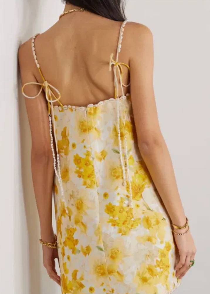 The Zimmermann Wonderland Shell Shift Mini Dress in size 1 is an elegant and unique piece, perfect for summer occasions. It features a chic shell motif that adds a maritime and luxurious vibe. With its straight "shift" silhouette, the dress is both comfortable and stylish, suitable for both casual outings and more formal events. Crafted from high-quality materials, it feels luxurious yet lightweight, with delicate and sophisticated details. This dress has been worn only once and is in excellent condition, making it a great purchase for someone looking for an almost-new designer piece. Original price was approximately $ 900, and rental value is around $300. Feel free to make an offer! :)