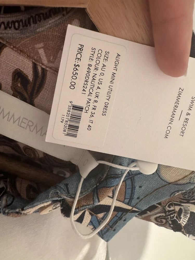 Zimmermann Alight Mini Utility Dress Nautical Patch Size 0. Condition is New with tags. Sent with eBay Postage Labels.