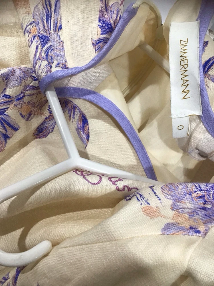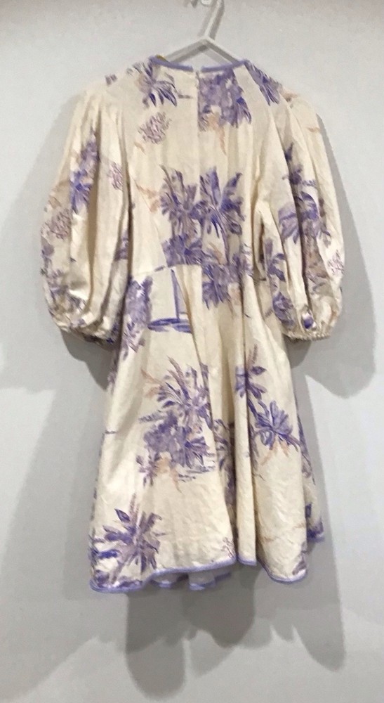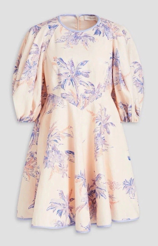 Zimmermann Linen Day Mini Dress Tropical Flare Designer Size 2 Au 12 SKU 2 A