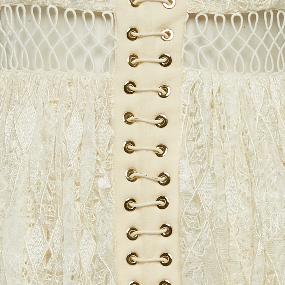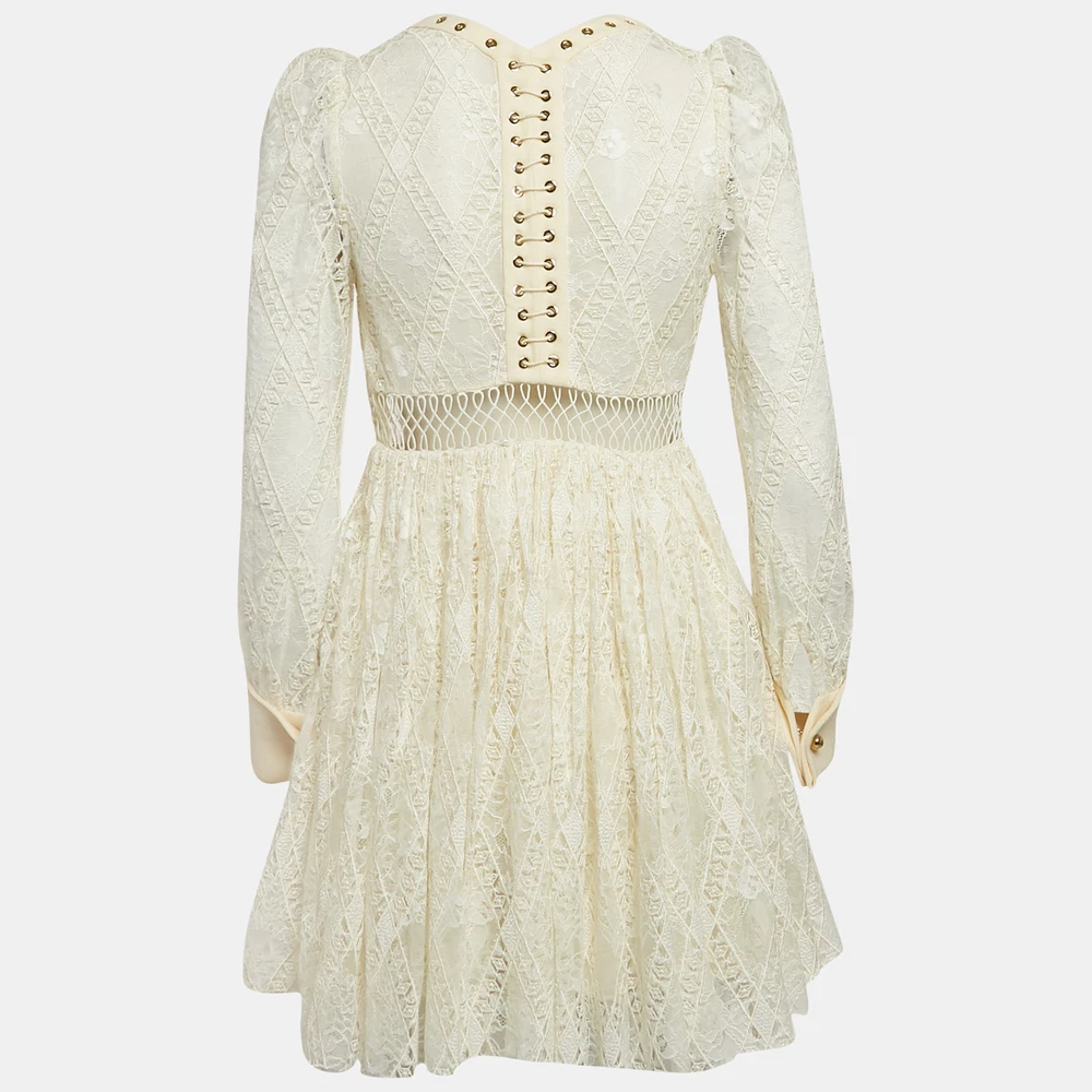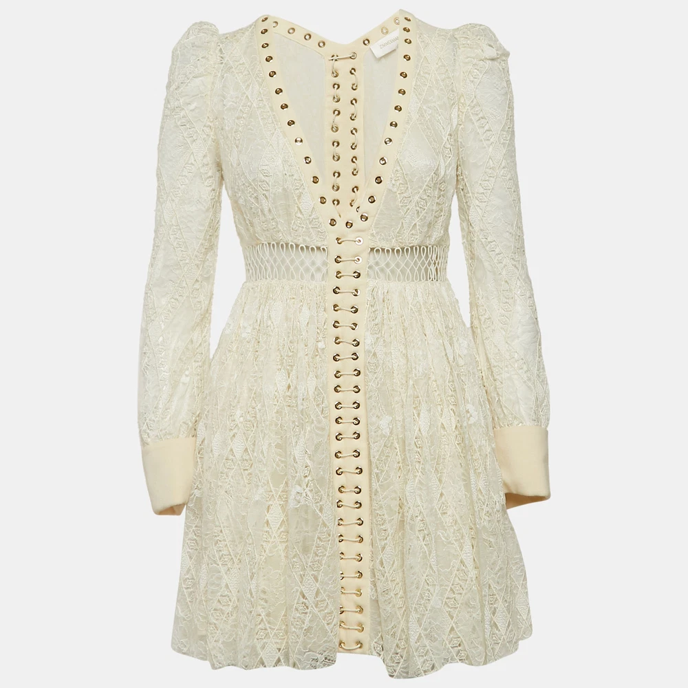 Effortlessly made into a chic design, this Zimmermann mini dress is easy to wear and easy to accessorize. Tailored beautifully, the dress is sure to remain a favorite season after season.Certified by The Luxury Closet - This item has gone through a detailed authentication process overseen by our experts. We offer a lifetime guarantee of authenticity on all our items. Import duties, taxes and charges are not included in the item price. These charges are the buyers responsibility. Please check with your country’s customs office to determine what these additional cost will be prior to buying. Our eBay Store About Us Contact Us Add to Favorite Sellers Zimmermann Off-White Lace Eyelet Detail Flared Mini Dress XS $291.5 Effortlessly made into a chic design, this Zimmermann mini dress is easy to wear and easy to accessorize. Tailored beautifully, the dress is sure to remain a favorite season after season. Product Details Brand Color White Dimensions Material Lace Size XS Outsole Width Outsole Length Heel Height Includes The Luxury Closet Packaging Certified by The Luxury Closet This item has gone through a detailed authentication process overseen by our experts. We offer a lifetime guarantee of authenticity on all our items. How We Check The in-house team of experts at The Luxury Closet is highly trained to verify the authenticity and the condition of the luxury products. They ensure that only 100% authentic items are put on sale.The evaluation process is unique with its own mix of assessment criteria and differs according to the category. Each item is evaluated based on the following combination of hallmarks, hardware, stitching, symmetry, material, craftsmanship, stamping, codes, hologram stickers, and packaging. Our authenticators also check if the items have been modified or amended (e.g., aftermarket diamonds, replaced batteries, repaired bags, etc.) International Buyers Import duties, taxes and charges are not included in the item price. These charges are the buyers responsibility. Please check with your country’s customs office to determine what these additional cost will be prior to buying.