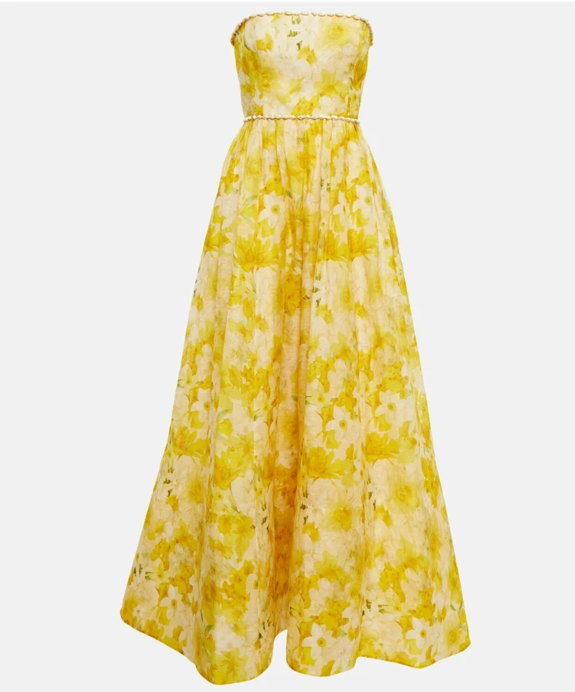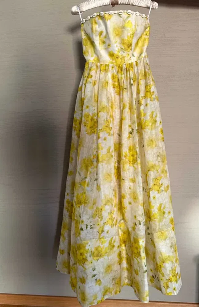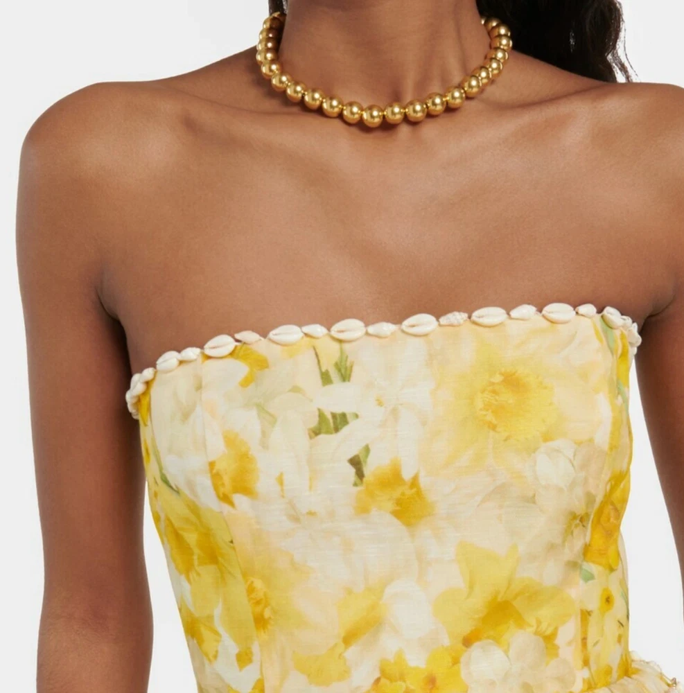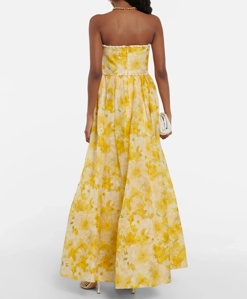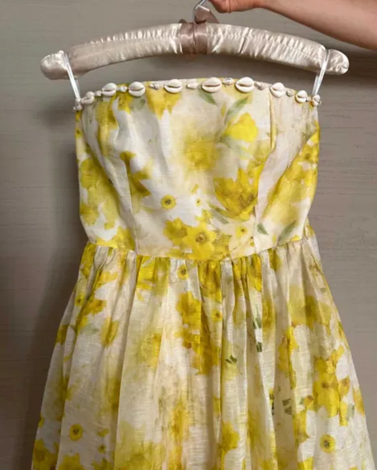 The Zimmermann Wonderland Shell Gown in Yellow Floral in size 0 is a spectacular and elegant dress, perfect for special occasions. It features a stunning silhouette and a luxurious feel, crafted from lightweight and delicate materials that offer fantastic movement. The beautiful floral design in yellow tones adds a fresh and summery touch, making it ideal for everything from weddings to gala events. This gown has only been worn once and is in excellent condition, making it a perfect choice for anyone looking for an almost-new designer piece. The original price is approximately $1,700, and the rental price is about $380 Feel free to make an offer!