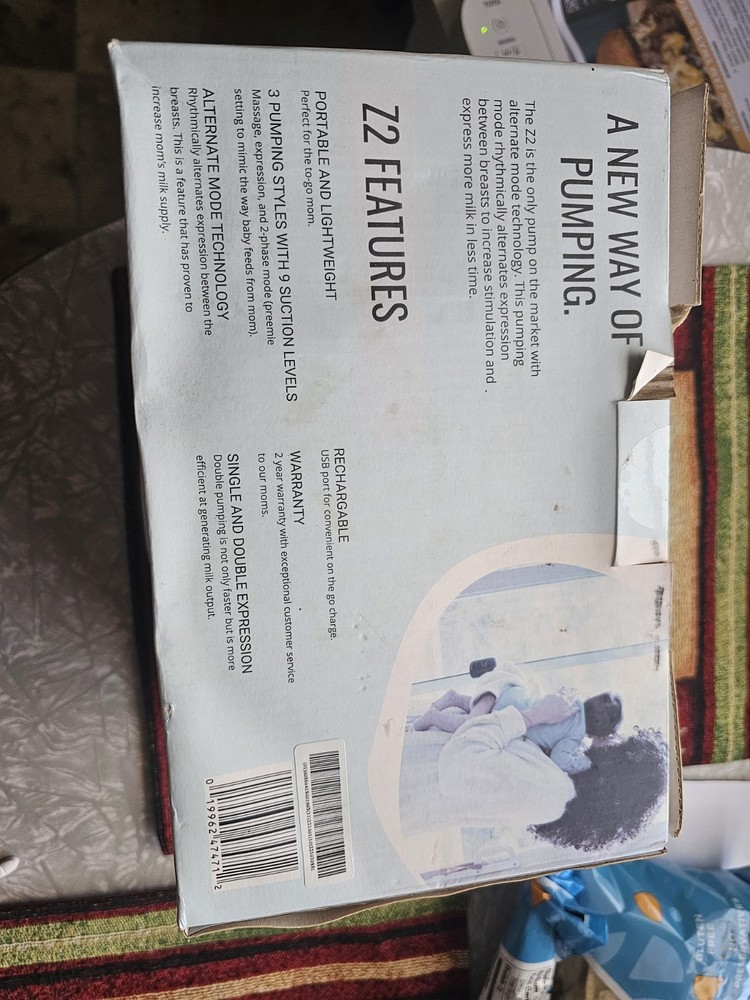 New never opened, box looks beat up from storage. The Zomee Z2 Double Electric Breast Pump is a portable and lightweight pump that utilizes alternate mode technology for single and double expression. With multiple suction levels and the ability to be rechargeable, this convenient breast pump is perfect for on-the-go nursing mothers. The sleek design in blue and white makes it a stylish addition to any feeding routine, while the included double pumping kit ensures all your needs are met. Try the Zomee Z2 for a seamless and efficient breastfeeding experience.