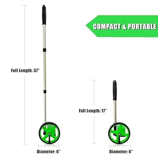 Product Description Take the guesswork out of measuring long distances with this 6-Inch Measuring Wheel with Telescopic Handle. Designed for accuracy, portability, and ease of use, this rolling measure tool is perfect for contractors, real estate appraisers, landscapers, or homeowners who need precise measurements indoors or outdoors. Featuring a telescopic handle with adjustable height, a durable 6-inch wheel with TPR tires, and a one-key reset button, this measuring wheel makes every project simple and efficient. With an impressive measuring capacity of up to 10,000 feet and ±0.5% accuracy, you’ll get reliable results every time—whether measuring boundary lines, road work, flooring, or landscaping. Lightweight yet sturdy, it folds down to just 17 inches and comes with a convenient carry bag, making it easy to store, transport, and take from one job site to the next. Built for professionals but easy enough for anyone to use, this measuring wheel is the must-have tool for accurate distance measurement. 3. Key Bullet Points / Features ✅ Accurate Measuring – Measures up to 10,000 ft in feet/inches with ±0.5% accuracy. ✅ 6-Inch Durable Wheel – High-quality TPR tire ensures smooth rolling on different terrains. ✅ Telescopic Adjustable Handle – Extends for comfort, folds to 17 inches for easy storage. ✅ One-Key Reset – Instantly reset readings with a single press, no hassle. ✅ Portable & Lightweight – Only 0.77 kg, includes a carrying bag for transport. ✅ Versatile Applications – Ideal for construction, landscaping, real estate, law enforcement, and DIY home projects. 4. Suggested Item Specifics / Attributes Type: Measuring Wheel Brand: Branded Wheel Diameter: 6 inches Measurement Capacity: Up to 10,000 ft (feet/inches) Accuracy: ±0.5% Handle Type: Telescopic / Foldable Reset Function: One-key reset Material: ABS + TPR Tire + Metal Rod Color: Green / White Weight: 0.77 kg (approx.) Included Components: Measuring wheel, telescopic handle, carry bag Use For: Construction, Real Estate, Landscaping, Law Enforcement, Indoor & Outdoor Projects Condition: New