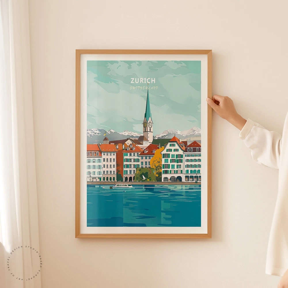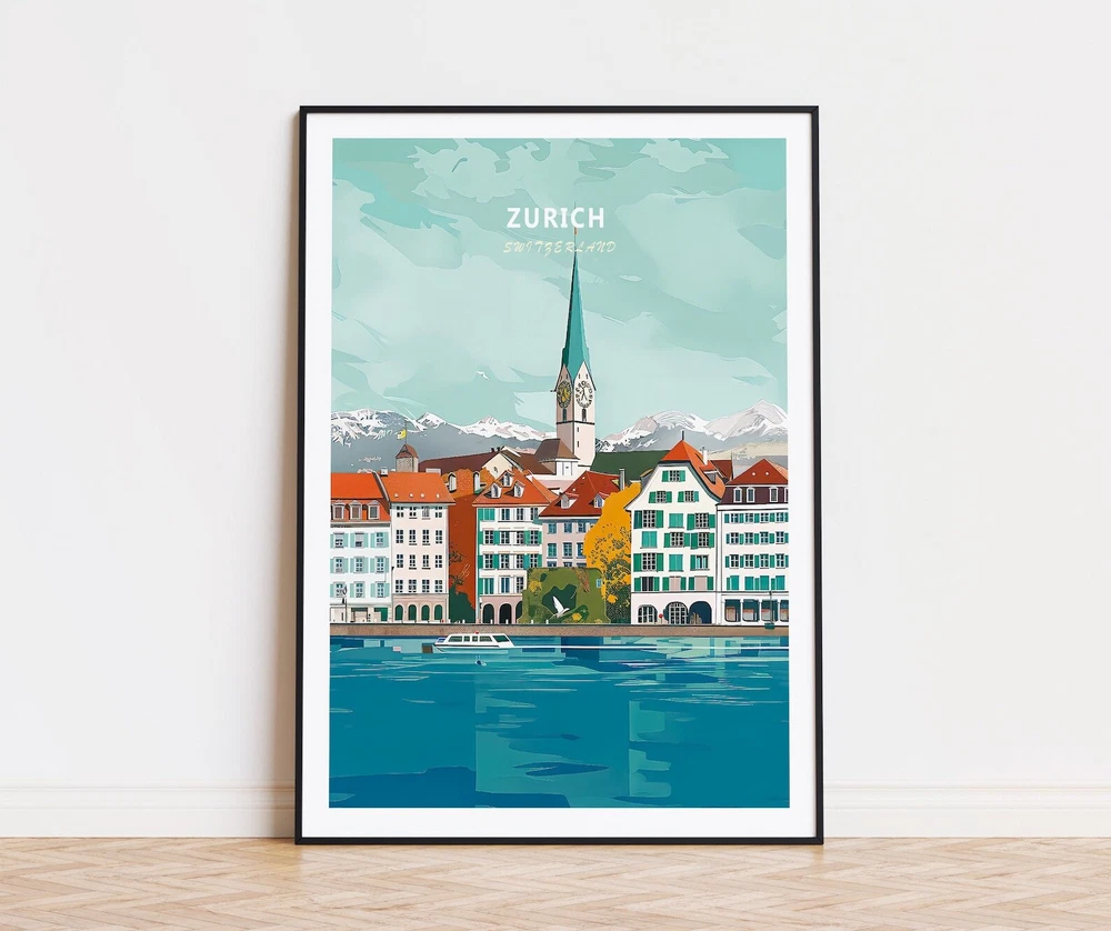 Zrich Travel Poster Switzerland Wall Art Zrich Print Custom Travel Poster Birthday Present Wedding Gifts Home Decor Material: Premium luster photo paper Print type: Inkjet printing One side printed + The finish provides the highest possible resolution and color saturation + Lasts up to 200 years in color and 400 years in black-and-white + Printed on high-quality resin-coated photo base paper medium + Posters can be hung with double-sided tape, tacks, or framed + Hand washing with a gentle cry cloth is recommended for extended durability I will hand select the best choice of paper for your chosen design to ensure top quality results for a beautiful, bright and luxurious print. All prints are sealed in cellophane slips for protection during transportation, and are shipped in a protective cardboard envelope.