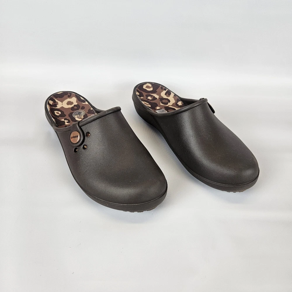Crocs Tully ll Womens Mule Brown Comfort Clog Round Toe Size 8 Animal Print Very good pre-owned condition