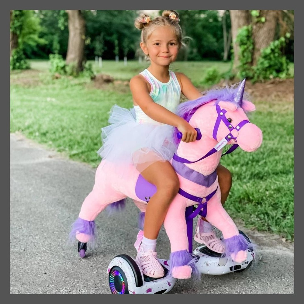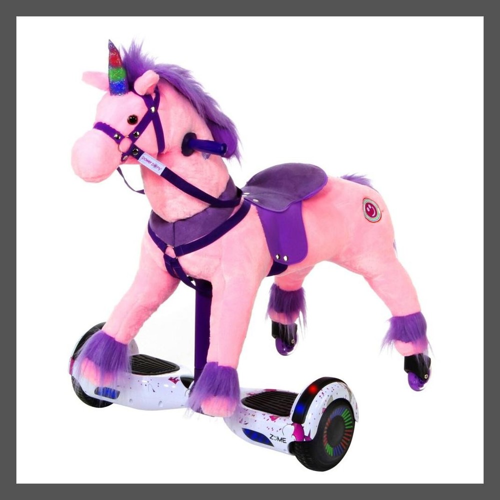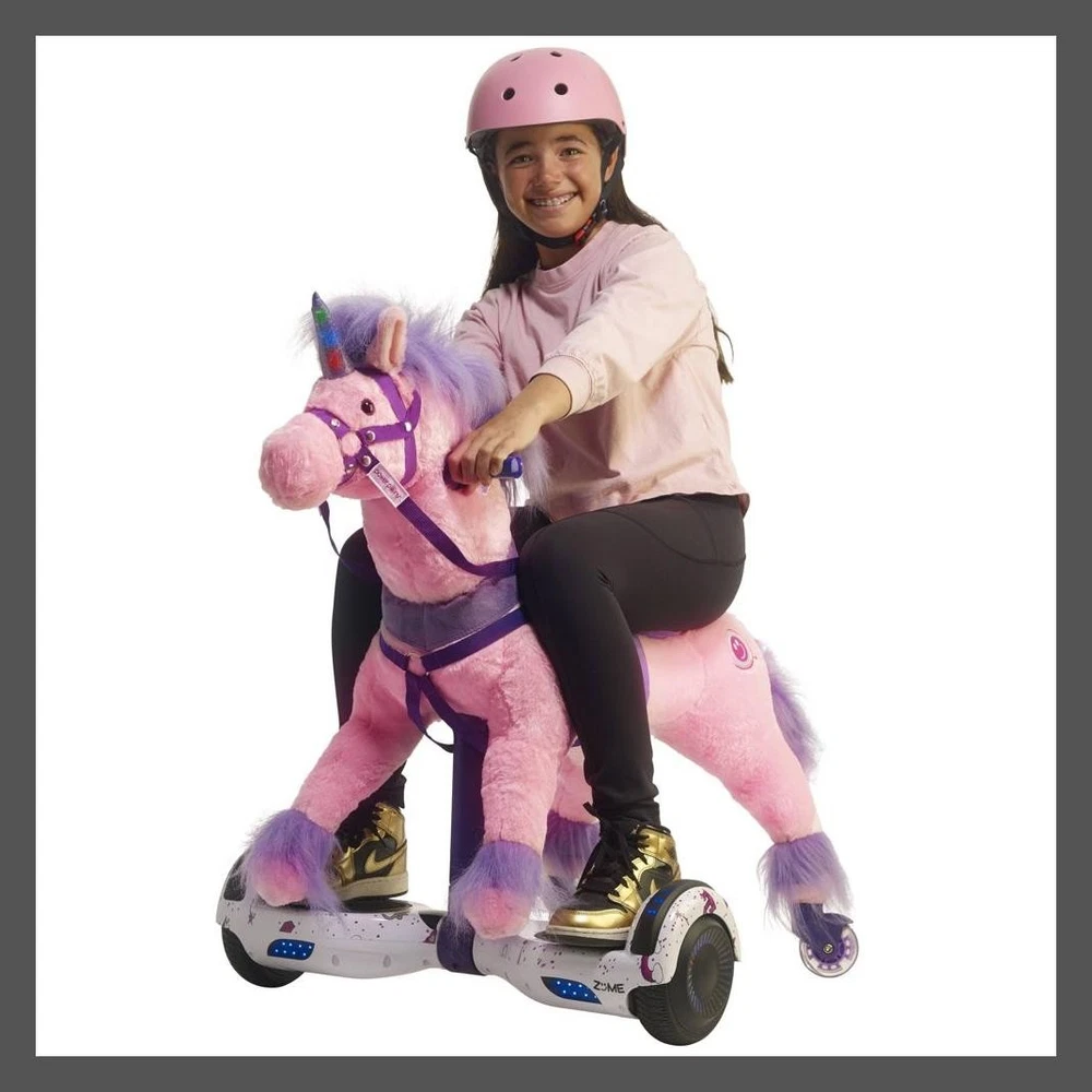 Introducing the Power Pony Powered Rideable Pony Ride-On in Princess Pink. This Zuma brand seated electric scooter is perfect for kids who love to ride in style. With LED lighting and a sleek design, this scooter is sure to make a statement on any adventure. The Power Pony is a great choice for anyone who wants to explore their neighborhood or beyond. Its durable construction and powerful motor make it a reliable ride for kids of all ages. So why wait? Get your child's imagination going with the Power Pony Powered Rideable Pony Ride-On today! New in sealed box The item is certified to UL 2272 standards