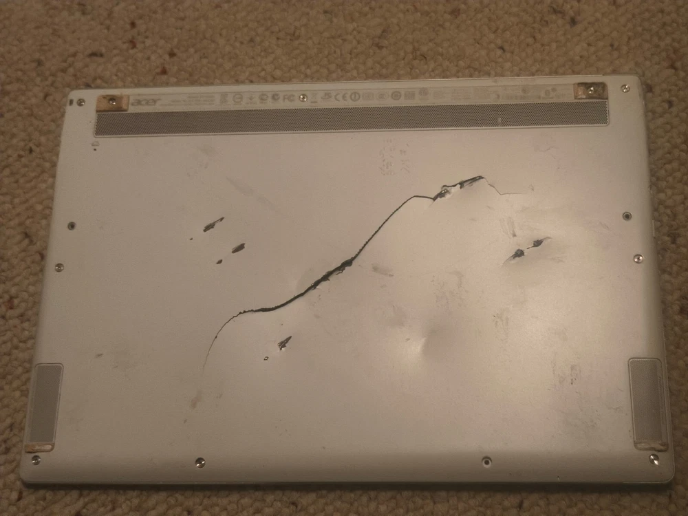 doesn't turn on. Lights come on when plugged in. Bottom is damaged. I don't know what is wrong with it and I don't know anything else about it. Not entirely sure if the cpu is a Intel Core i7-3517U, I'm just going by what is online and what information I found on this laptop. Sold as-is. For parts or repair. See all pictures. What you see is what you get.