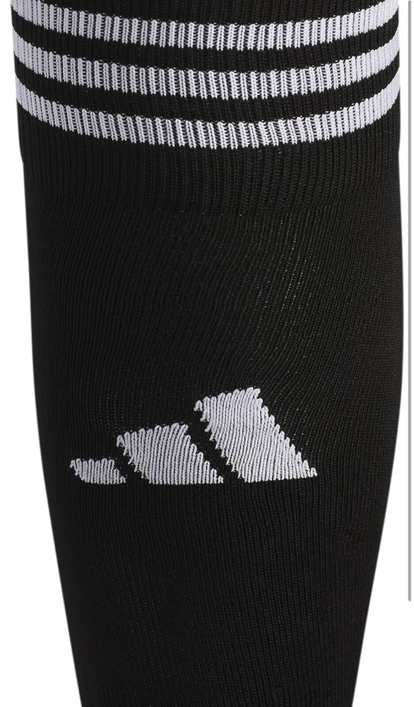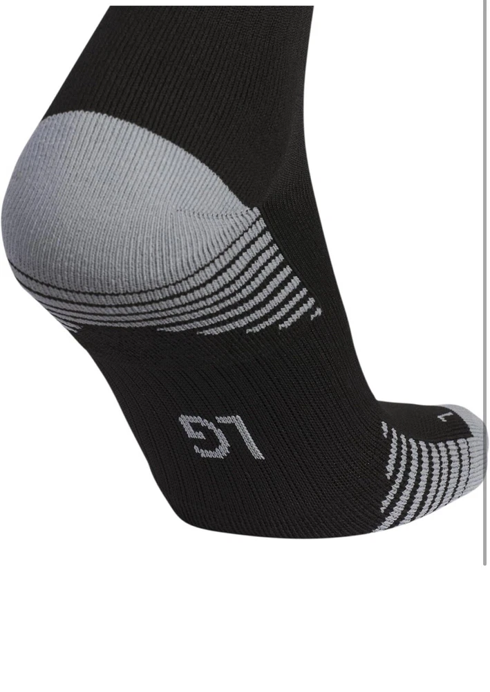 About this item • Moisture-wicking yarn keeps your feet dry from sweat • Classic 3-Stripe finish at the welt and a center front Badge of Sport logo • Targeted cushioning at heel and toe for shock absorption • Arch and ankle compression for secure fit and added support • Lightweight construction for a close fit and excellent ball touch • Mesh ventilation provides added breathability Description Before you head out on the pitch, pull on these adidas soccer socks. The 3-Stripes are the last thing the competition will see just before you score. Airy mesh in key areas, moisture-wicking yarn and the over-the-calf length keep you ready for action.