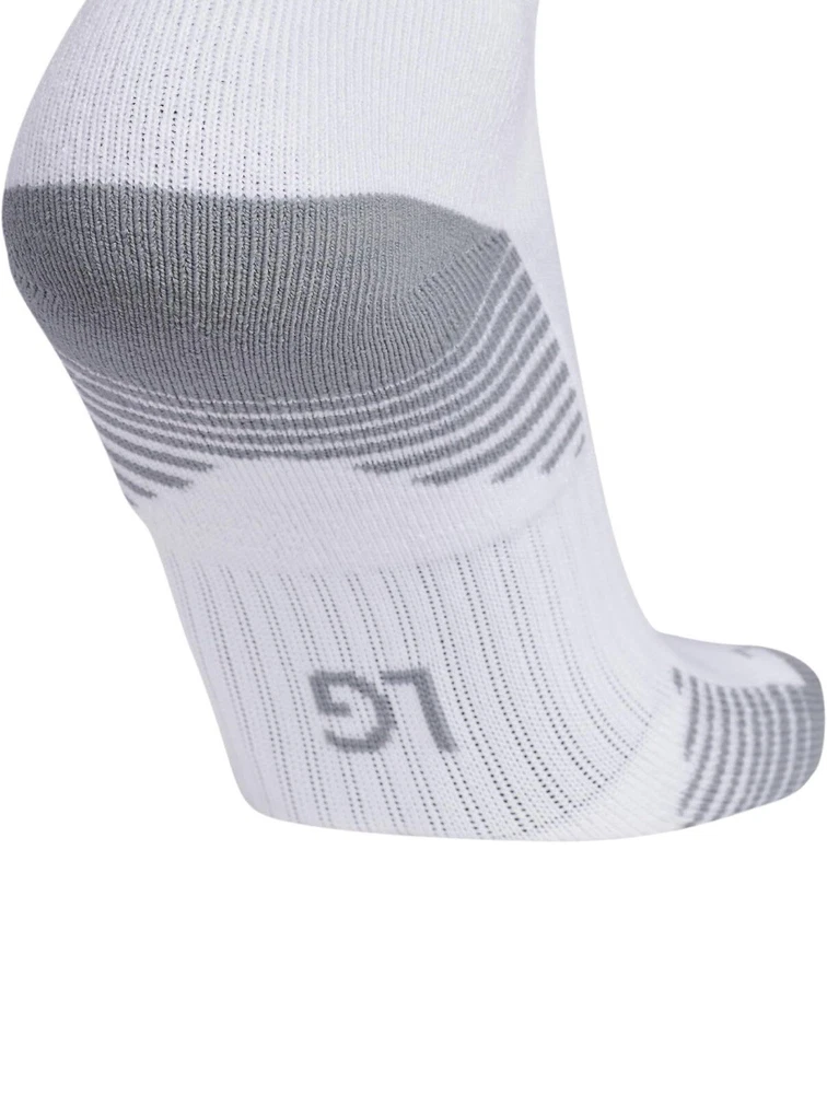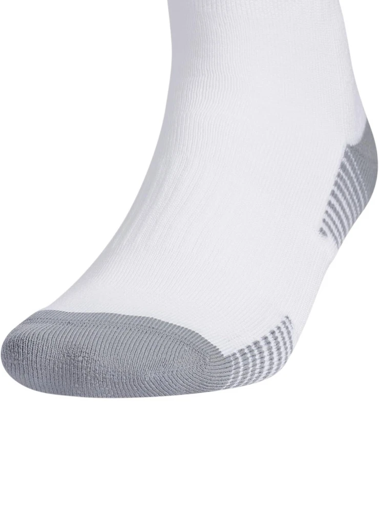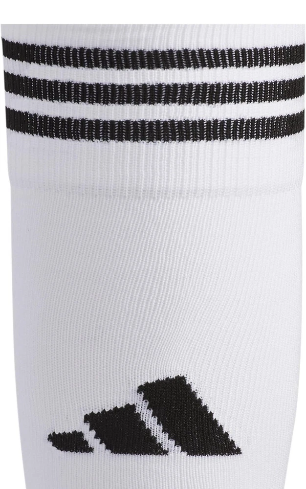 About this item • Moisture-wicking yarn keeps your feet dry from sweat • Classic 3-Stripe finish at the welt and a center front Badge of Sport logo • Targeted cushioning at heel and toe for shock absorption • Arch and ankle compression for secure fit and added support • Lightweight construction for a close fit and excellent ball touch • Mesh ventilation provides added breathability Description Before you head out on the pitch, pull on these adidas soccer socks. The 3-Stripes are the last thing the competition will see just before you score. Airy mesh in key areas, moisture-wicking yarn and the over-the-calf length keep you ready for action.