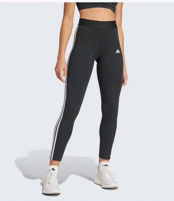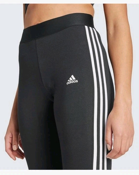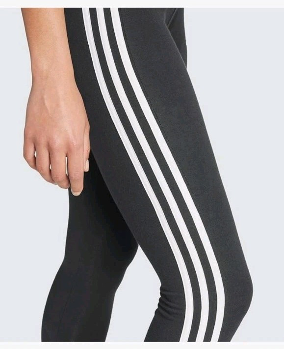 These adidas Women's 3 Stripes Leggings in black feature a striped pattern and the iconic adidas logo. Made of cotton jersey fabric, these medium wash leggings have a mid-rise fit and are designed for activewear use. They come in size M and are ideal for the gym, running, or jogging during the autumn and spring seasons. Care instructions include hand washing only.