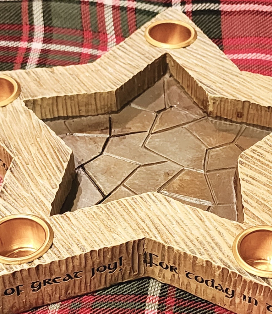 Add a touch of elegance to your holiday decor with this beautiful advent wreath (5) candle holder. Crafted from high-quality resin, this piece features a beige color that complements any Christmas theme. It's perfect for holding candles and adding a warm, festive glow to your home. This advent wreath candle holder is a great addition to any holiday collection and will make a wonderful gift for loved ones. Celebrate the season in style with this charming and sophisticated piece that is sure to impress. It measures 10.75 x 9.88 x 3.82 inches and weighs 1.65 pounds.