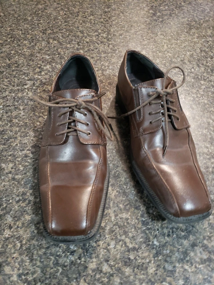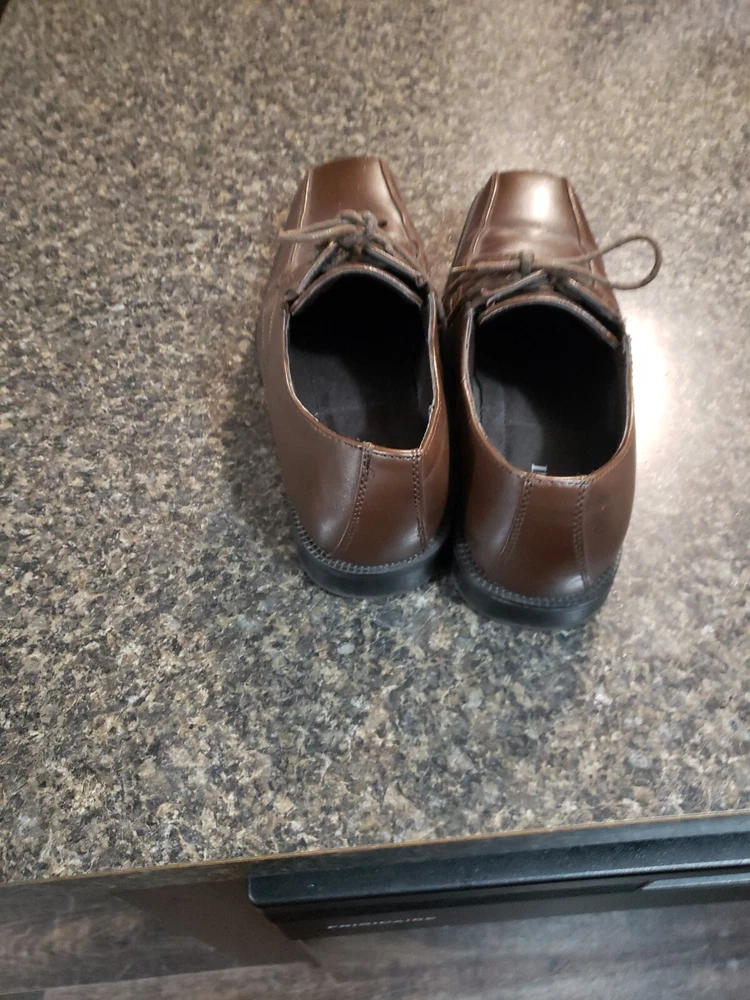 Elevate your style with these brown Alfani oxford dress shoes. Designed for men with a US shoe size of 10, these shoes are made with faux leather as the upper material. The shoes come in a classic dress shoe style that is perfect for formal occasions. The shoes are pre-owned but still in excellent condition. They are perfect for those who want to look great without breaking the bank. These Alfani dress shoes are ideal for the modern man who wants to look stylish and feel comfortable at the same time.