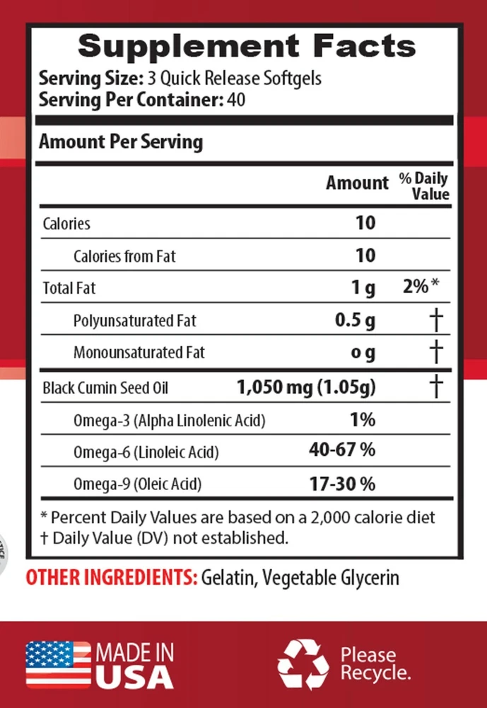 antibacterial supplements - BLACK SEED OIL - nigella sativa supplement 2B VIRGIN BLACK SEED OIL LOOK YOUNGER METABOLISM BOOSTER WEIGHT LOSS ANTIOXIDANT IMMUNE BOOSTER SKIN AND HAIR HEALTH ANTI INFLAMMATORY 2 BOTTLES - 240 Softgels NATURAL BLACK SEED OIL: Black seed oil (also often called black cumin seed oil, black coriander oil, or simply black oil) comes from the Nigella sativa plant that is native to Asia. There are now over 600 studies showing the effects of black cumin seed oil and there is promising research on it to benefit your health. So you might as well give it a try! BLACK SEED OIL HAS ANTI INFLAMMATORY PROPERTIES: Black seed oil has been in use for thousands of years for remedies, food, and even cosmetics. Today, many people reach for it for the same reason you’d take an a.s.pirin or i.b.uprofen: In hopes that it targets inflammation and tamps it down. It also has substances that can help protect cells from damage. The black seed oil can protect against oxidative stresses. BLACK SEED OIL BENEFITS SKIN AND HAIR: In addition to being a natural skincare aid, there are also black seed oil benefits for hair. Not surprisingly, black seed oil is often featured on lists of natural ways to boost hair and scalp health in numerous ways. With its antioxidant, antibacterial and anti-inflammatory properties, it can also help the health of the scalp in general. BLACK SEED OIL BENEFITS IMMUNE SYSTEM: Black Seed Oil has a unique way of supporting the immune system. It contains powerful antioxidants, beneficial acids, and B-vitamins you would expect in a natural remedy, but has an additional benefit. Black seeds seem to balance the immune system — increasing immune function but not encouraging immune reactions against the body’s healthy tissues. BLACK SEED OIL HELPS PEOPLE AROUND THE WORLD: Black seed—also called black caraway, black cumin, black onion seed and kalonji—comes from Nigella sativa, a flowering shrub that grows in Eastern Europe, the Middle East, and Asia. It contains chemical compounds called thymoquinone and caryophyllene that have been linked to certain amazing and powerful health benefits. BLACK SEED OIL IS A NATURAL METABOLISM BOOSTER: Nigella sativa seeds are carminative, meaning they aid in digestion and may decrease gas, bloating, and stomach pain. Black seed oil is often sometimes used in remedies for intestinal parasites. In preliminary studies, it was also shown to promote the health of colon cells. BLACK SEED OIL AIDS IN WEIGHT LOSS: Research has shown that black seed supplementation can help lower people's body mass index. The study participants did not report any severe side effects from taking this supplement. A systematic review published in 2013 found that black seed oil could be effective in tackling obesity. BLACK SEED OIL HAS ANTIOXIDANT PROPERTIES: Antioxidants are substances that neutralize harmful free radicals and may oxidative damage to cells. Research shows that antioxidants can have a powerful effect on health and issues. Several compounds found in kalonji, such as thymoquinone, carvacrol, t-anethole and 4-terpineol, are responsible for its potent antioxidant properties. CAUTION: Do not exceed recommended dose. Pregnant or nursing mothers, children under the age of 18, and individuals with a known medical condition should consult a physician before using this or any dietary supplement. These statements have not been evaluated by the Food and Drug Administration. This product is not intended to diagnose, , , or any disease. PREMIUM QUALITY PRODUCT