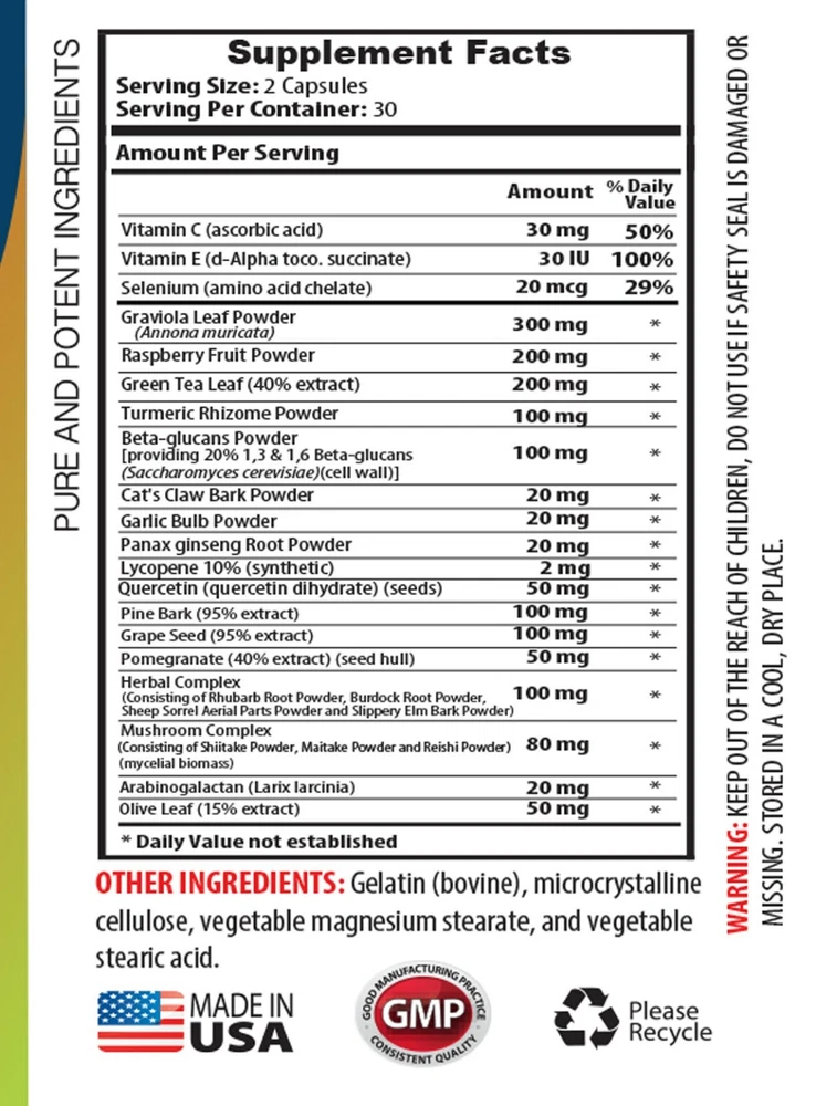 antioxidant boost powder - IMMUNE SUPPORT COMPLEX - turmeric powder 3B Immune Support Complex Dietary Supplement CAN BOOST ENERGY HAS MOOD BENEFITS ENHANCES BRAIN FUNCTION HAS ANTIOXIDANT POWER Natural Immune Booster 3 BOTTLE - 180 CAPSULES IMMUNE SUPPORT: Most of us only notice our immune system when it is working hard. Normally it exists under the radar, removing unwanted guests with every breath. But if your immune system is not in check thats when health problems can come up and mess everything up for you. VITAMIN C ANTIOXIDANT: Vitamin C, also known as ascorbic acid, is an essential nutrient that keeps the body functioning. If you live in a cold climate or winter is just around the corner and you dont want to get sick then Vitamin C can be your best friend because it is know as one of the best immune system boosters. GARLIC FOR A HEALTH IMMUNE SYSTEM: Garlic is a common home remedy for the prevention of colds and other illness. One review looked at whether taking garlic supplements reduced the risk of getting a cold. The group of participants taking a placebo had more than double the number of colds between them than those taking the garlic supplements. At the end of the day garlic is really good for your immune system. INFLAMMATORY RELIEF: While some inflammation is necessary for the body to recovery, chronic inflammation can lead to serious health conditions. Cat’s claw has powerful antioxidant and anti-inflammatory compounds including oxindole alkaloids, sterols, carboxyl esters, oleanolic acid, loganic acid, and chlorogenic acid, among others. These compounds neutralize free radicals in the body, thereby reducing oxidative stress and preventing their activities. GRAVIOLA SUPPLEMENT: A Korean study states that the intake of soursop can enhance immunity. This can be attributed to the bioactive compounds in the fruit. The study concludes by stating that soursop leaf extract has the potential to stimulate immunity, and hence can be used in supporting immune system functions. Soursop can also be made a part of the diet to improve the overall lifestyle quality. TURMERIC FOR YOUR IMMUNE SYSTEM: The slightly bitter, bright yellow-orange turmeric root contains curcumin, a main ingredient in curries. Curcumin is a powerful anti-inflammatory that may protect the liver from toxins. Turmeric is known worldwide as one of the best immune boosting foods around. GREEN TEA BENEFITS FOR YOUR IMMUNE HEALTH: Green tea is one of the healthiest beverage. It is considered to be an “anti-aging beverage.” You’ve probably heard a lot about the health benefits of green tea — loaded with antioxidants and nutrients that are great for your body and mind. Green Tea extract can help with weight loss, heart problems, cholesterol lowering and much more! GINSENG FOR BETTER MOOD: Ginseng could help improve brain functions like memory, behavior and mood. Some test-tube and some studies show that components in ginseng, like ginsenosides and compound K, could protect the brain against damage caused by free radicals. One study followed 30 healthy people who consumed 200 mg of Panax ginseng daily for four weeks. At the end of the study, they showed improvement in mental health, social functioning and mood CAUTION: Do not exceed recommended dose. Pregnant or nursing mothers, children under the age of 18, and individuals with a known medical condition should consult a physician before using this or any dietary supplement. These statements have not been evaluated by the Food and Drug Administration. This product is not intended to diagnose, treat, cure, or prevent any disease. GREAT QUALITY PRODUCT