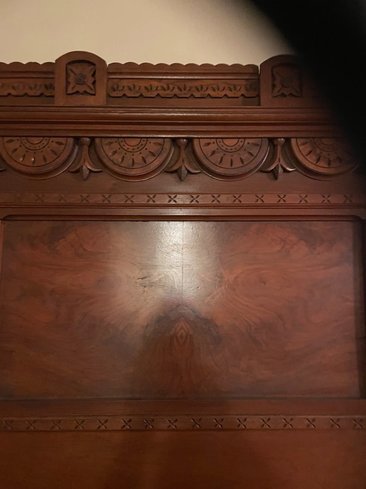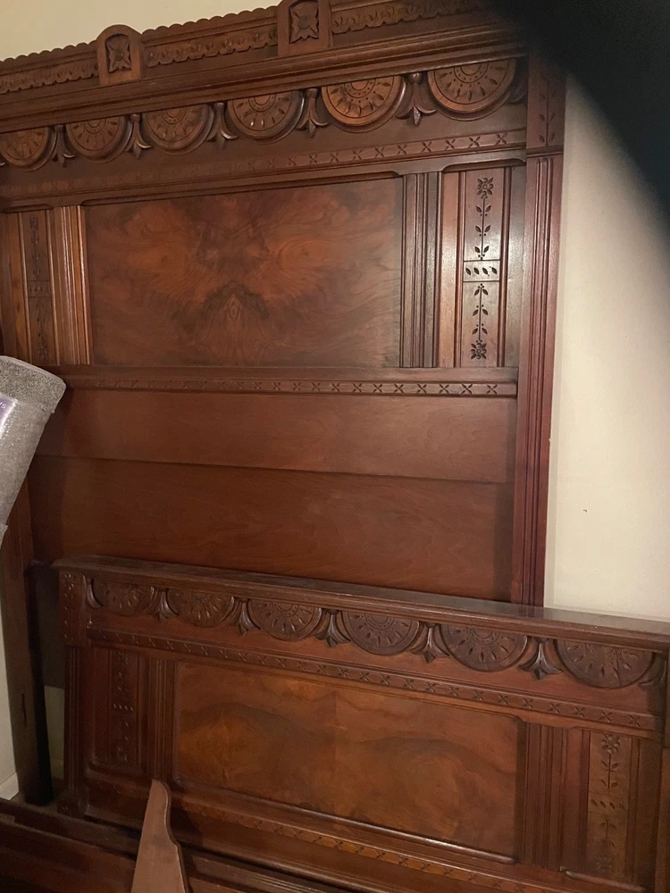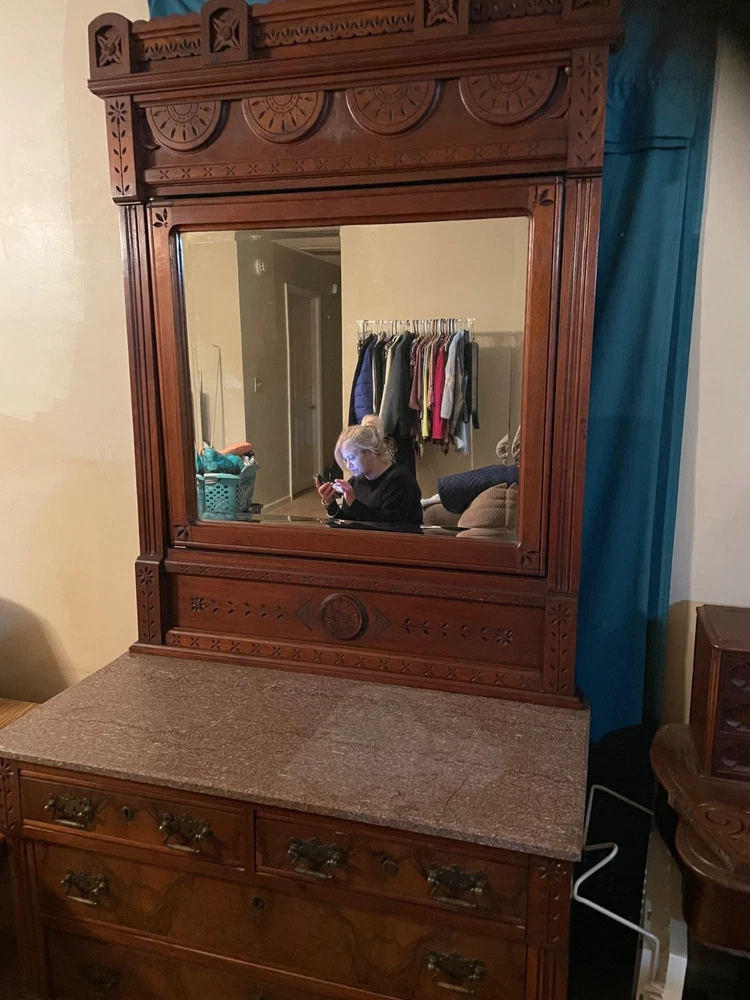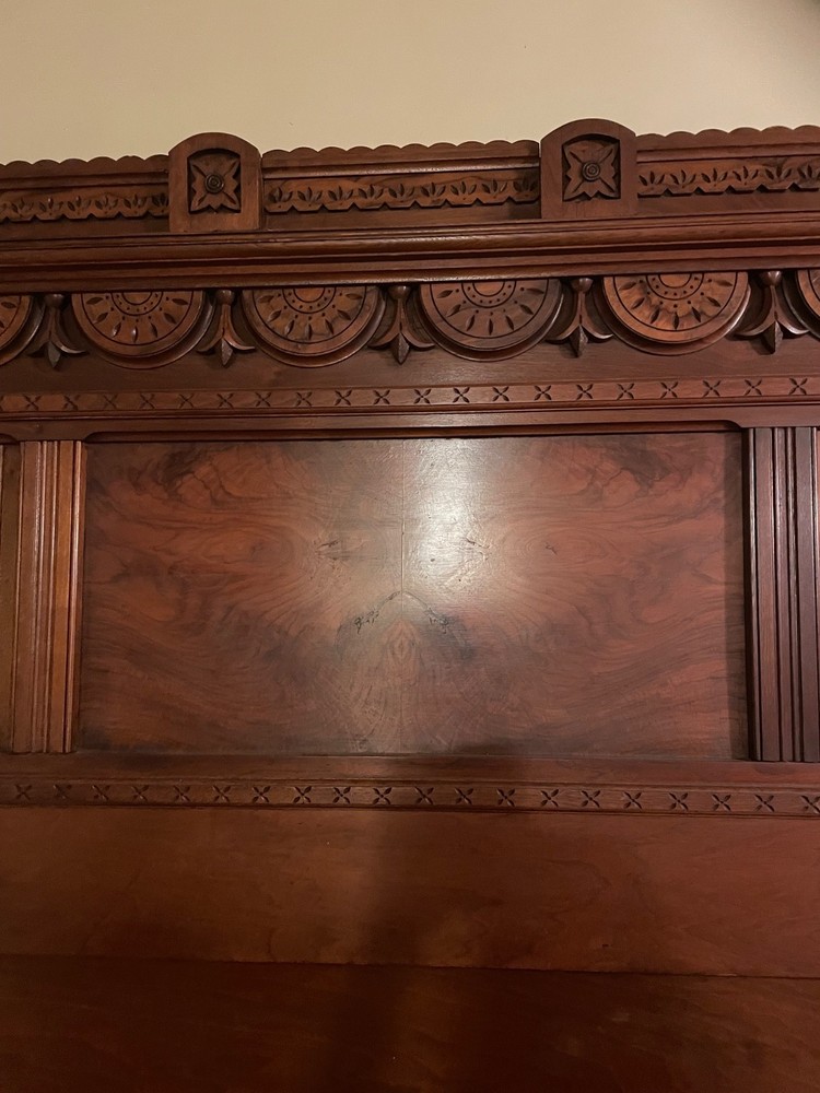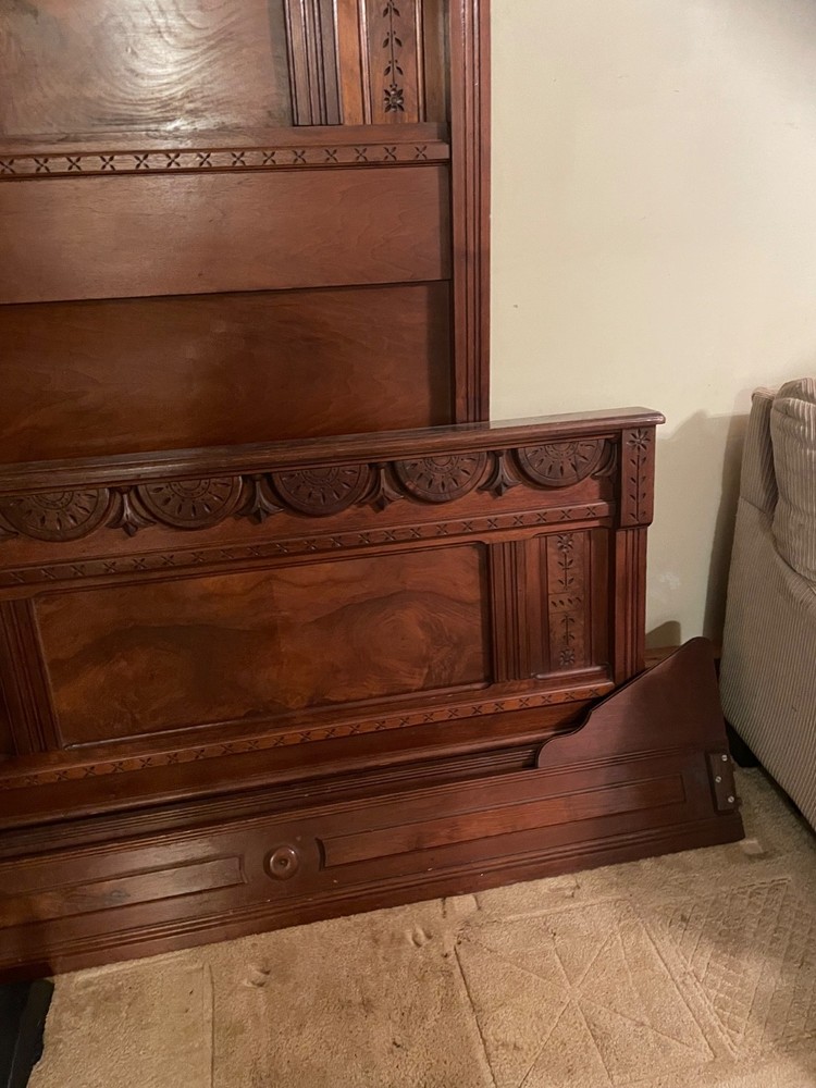 antique full size bed eastlake style with dresser with marble top and mirror