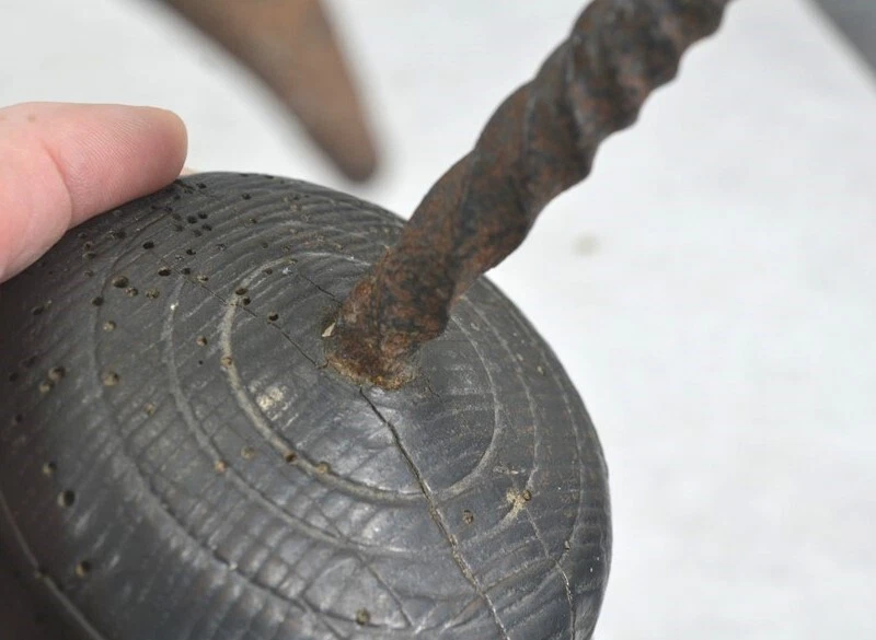 antique rush/candle lamp holder forged 11.5 in. w/candle & rush 18th c original antique table top rush/candle lamp with candle and rush 1. original not reproduction, late 1600s to 1700s 2. all in very good condition 3. nothing broken 4. some slight play in the rush clamp, works well holds rush, just a little play 5. candle is old, not sure if it is tallow 6. rush is old 7. I have not cleaned this, some light surface rust on metal, will brush off 8. bottom wood is hand turned, solid and sits well 9. very nice all original lamp approximate measurements 1. total height 11.5 in. 2. base 4.45 across the bottom x 3.5 high 3. candle holder 1.75 x 5/8 in. opening 4. candle 5.75 long priority or ground advantage shipping and handling in US scroll down for larger photos You may be interested in our other eBay listings . I send a note at the end of the sale with payment information. Payment is expected within 2 days. We ship promptly within 1 day on receipt of payment. All US packages have tracking and are insured. International Buyers We ship international with United States Postal Services. USPS First Class postage and Flat Rate Priority Boxes or Envelopes can now be tracked to some countries . International packages over $100 ship priority or express. Contact us for more information. Import duties, taxes and charges are not included in the item price or shipping charges. These charges are the buyer’s responsibility. Please check with your country’s customs office to determine what these additional costs will be prior to bidding/buying.” . Powered by SixBit's eCommerce Solution