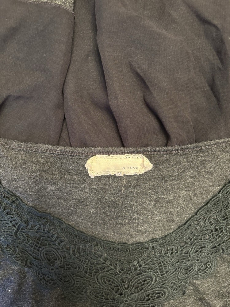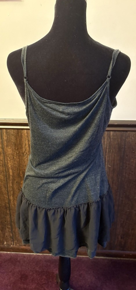 The a’reve Women’s Dark Grey Tank Top Style Shirt in size medium is a stylish and versatile piece for casual occasions. This sleeveless top features a scoop neckline and strappy sleeves, offering a comfortable and trendy look. Made from a blend of polyester and rayon, this tank top is perfect for warmer seasons like summer and spring. The pullover closure and solid gray color make it easy to pair with different bottoms for a chic and effortless outfit.