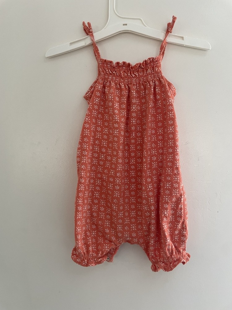 baby Gap Girl Geometric Floral Cotton Smocked Sleeveless Romper Miami Coral 6-9M. Condition is pre-owned. Smoke free, pet free home. Shipped via USPS Ground Advantage. In very good condition. Free of rips or stains.