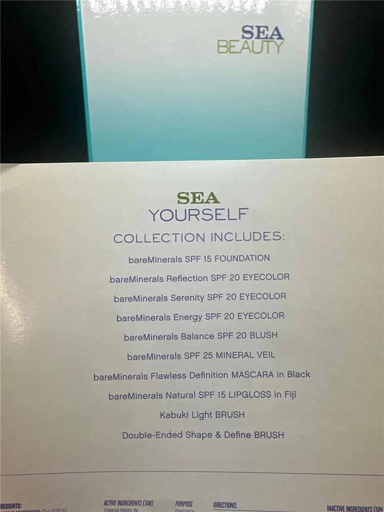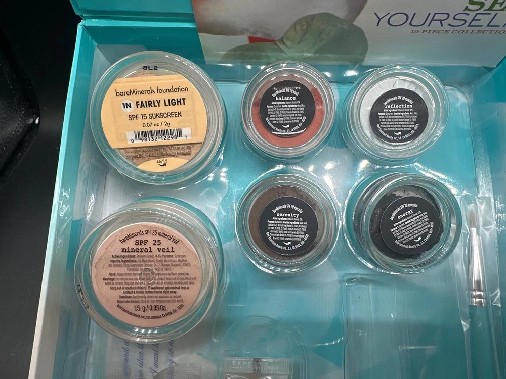 bareMinerals SEA YOURSELF 9 Piece Collection Foundation Eyecolor Veil Brushes bareMinerals SEA YOURSELF 9 Piece Collection Foundation Eyecolor Veil Brushes Click images to enlarge Description FOR YOUR BIDDING CONSIDERATION: bareMinerals i.d Sea Yourself 9 Piece Color Collection Mascara is missing due to it being outdated This gift set included: bareMinerals SPF 15 Foundation bareMinerals Reflection SPF 20 Eyecolor bareMinerals Serenity SPF 20 Eyecolor bareMinerals Energy SPF 20 Eyecolor bareMinerals Balace SPF 20 Blush bareMinerals SPF 25 Mineral Veil bareMinerals Natural SPF 15 Lipgloss in Fiji Kabuki Light Brush Doubled-Ended Shape & Define Brush Check out my other listings for more bareMinerals Make Up Sets! I purchase my items from local estates, auctions, warehouse overstock and cannot confirm anything about them or if they come from smoke free/pet free homes. I try my best to represent items to the best of my knowledge. Used items are never as good as NEW. Do not purchase if you are not willing to accept less than perfect. Please read the description thoroughly and review pictures before committing to buy. Thank you! ALASKA - HAWAII - PR - APO - ADDITIONAL CHARGES MAY APPLY SHIPMENTS GO OUT MONDAY-FRIDAY WEEKEND SALES SHIP MONDAY OR TUESDAY Images sell! Get Supersized Images & Free Image Hosting Create your brand with Auctiva's Customizable Templates. Attention Sellers - Get Templates Image Hosting, Scheduling at Auctiva.com. Track Page Views With Auctiva's Counter