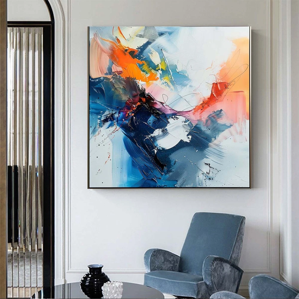 blue Living Room Abstract oil Painting on Canvas Art Hand Painted Thick Texture