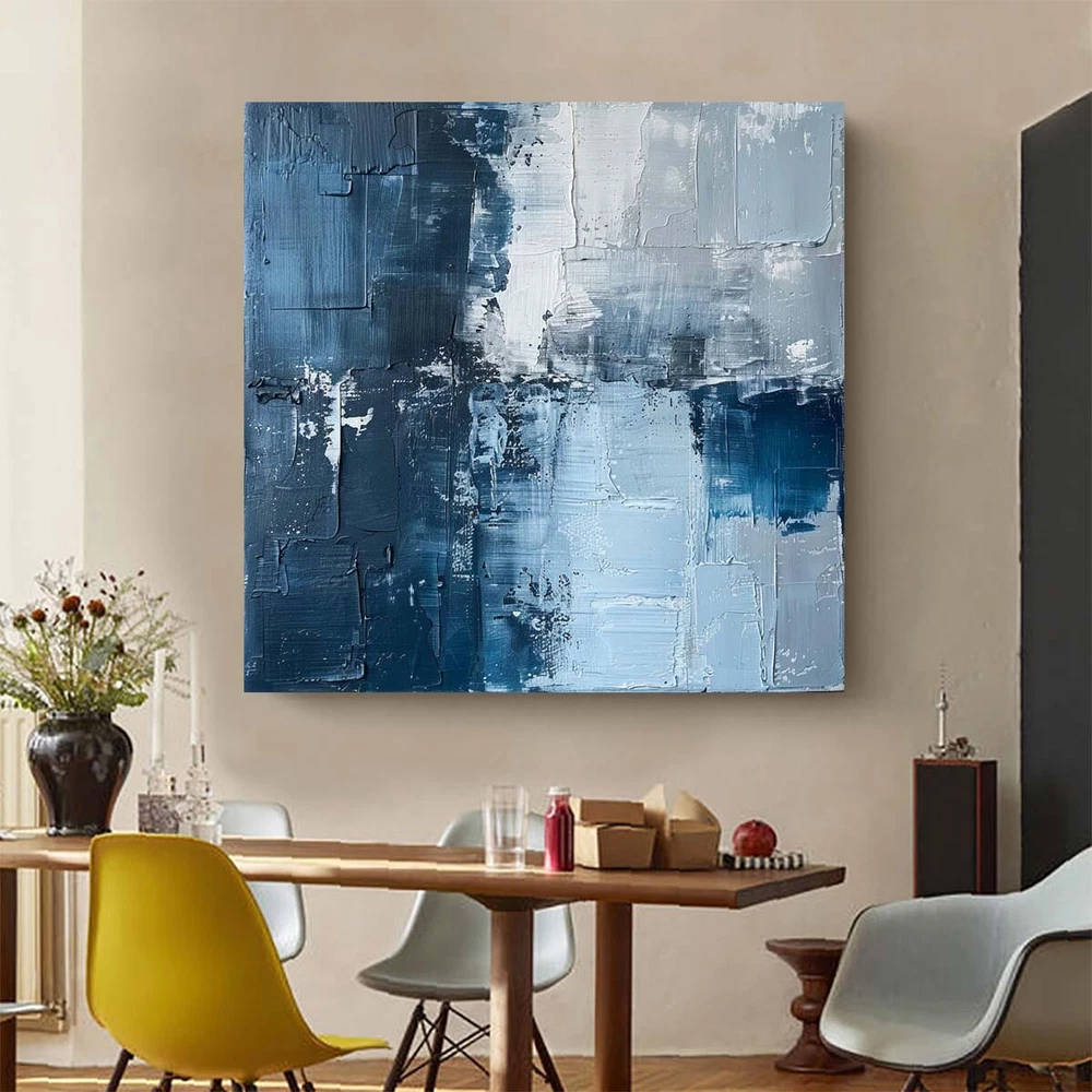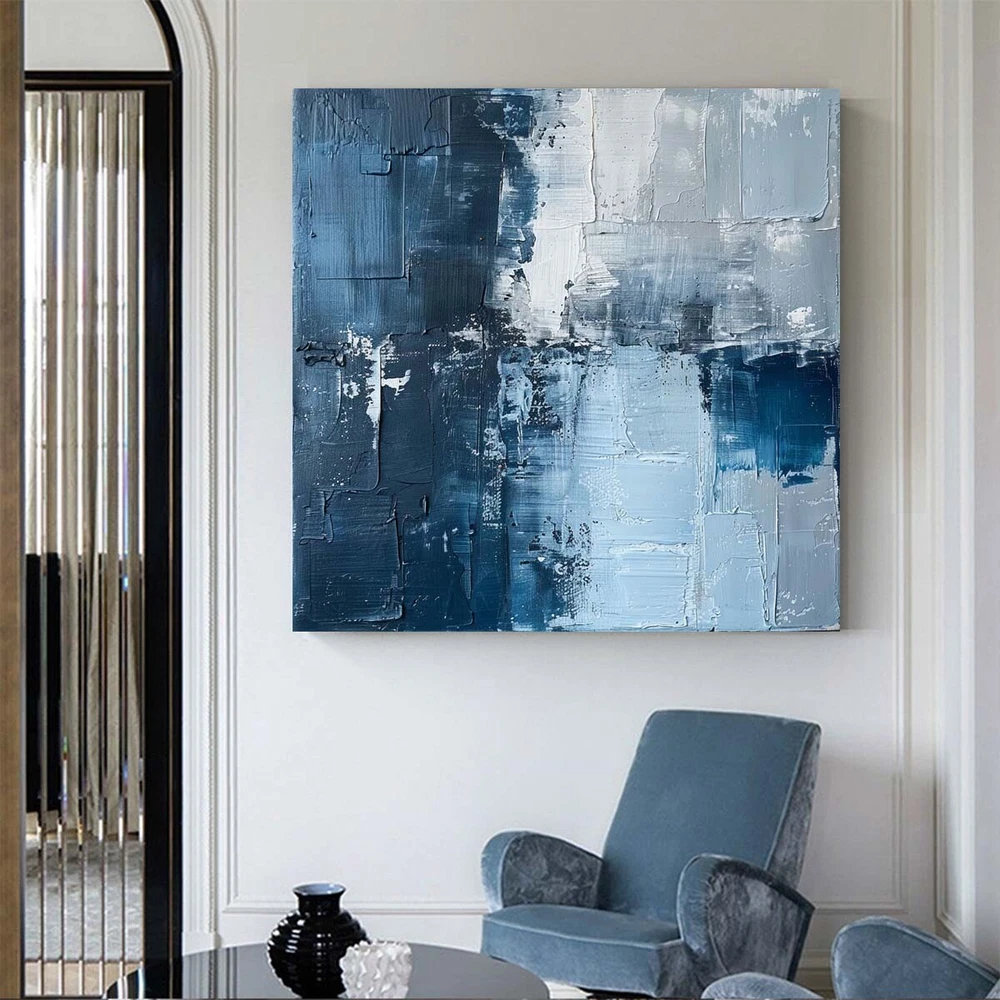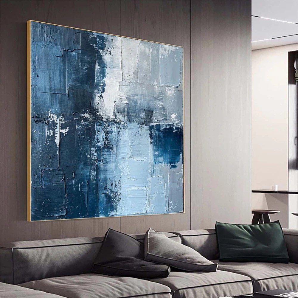blue Modern Home Decor Handmade Abstract Oil Painting on canvsa Living Room