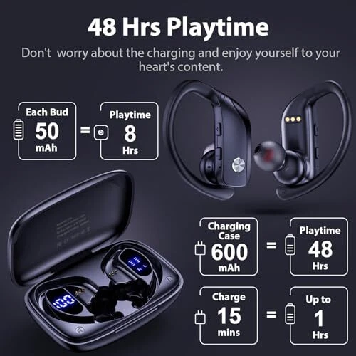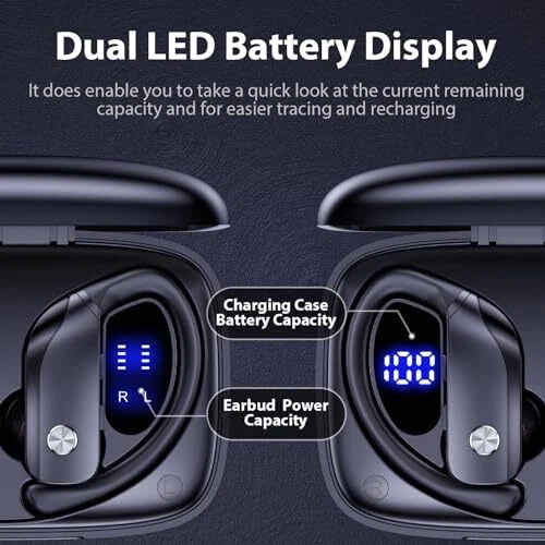 Return Policy Fast Delivery Trusted seller bmanl Wireless Earbuds Bluetooth Headphones 48hrs Play Back Sport Earphones with LED Display Over-Ear Buds with Earhooks Built-in Mic Headset for Workout Black Product Description Dual LED Displays Charging Case: Wireless earbuds with LED display make it obvious to show the battery power of the case and ear buds. The remaining power in percentage on the screen is shown to the left of the bluetooth headphones. The right side is assigning to a charging process of each bud, t are separated power consumption indicators by 4 grids in total, each grid represents 25% power of bud. During Charging, the LED indicator light will flash. Bluetooth and Stereo Sound Quality: bluetooth earbuds adopt bluetooth technology, which can offer a clear and smooth connection, allowing you to hear crystal clear calls like you are communicating face to face with others. Don't worry about interruptions on listing to music and calling. One Button Control and Auto Pairing: Compared with touch control, button control is easy so that you can obviate any operations and don't need to remember its instruction. When you pick wireless earphones out of the charging case, they'll automatically connect to the paired previous device. The range can reach up to 33ft away. When you put it back, the bluetooth earphones shut down and are recharging. Designed for Sports: Sport headphones to keep you motivated, a secure fit that won’t shift or fall out during long hours of training, and no wires to hold you back. Equipped with 3 pairs of ear caps and flexible earhooks, which can stay on your ears and get a suitable fitting. So that you will not feel tired and pain when wearing it for a long time. bluetooth earphones can fit for camping, running, or working out, even on a rainy day. Shipping Returns Payment Shipping Shipping is FREE to all addresses other than APO/PO boxes in the lower 48 states. All our stock ships from US-based warehouses. Shipped via USPS or UPS (depending on location and package weight) Unless stated otherwise, all orders will ship within 24-72 hours of your payment being processed. Check our feedback to see the great reviews of FAST shipping we offer. Returns Seller does not accept returns Payment We currently accept payment via eBay managed payments only. Once payment is cleared, we will dispatch your shipment within 1-3 business days. Please refer to the "Shipping" tab for more information regarding shipping speed to your destination.
