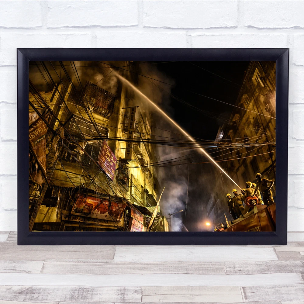 cityscape Street India People Life Moment Places Fire Fighting Wall Art Print