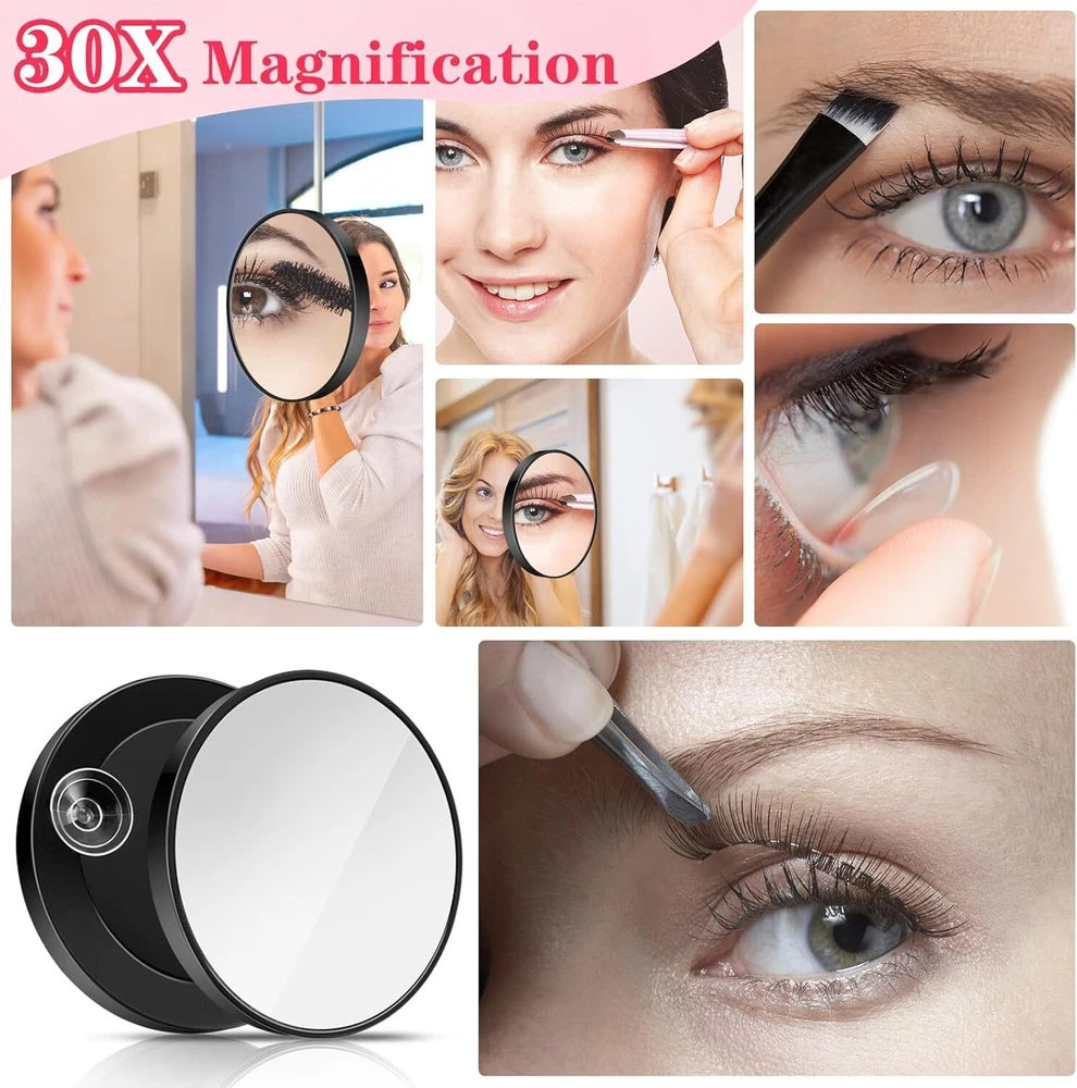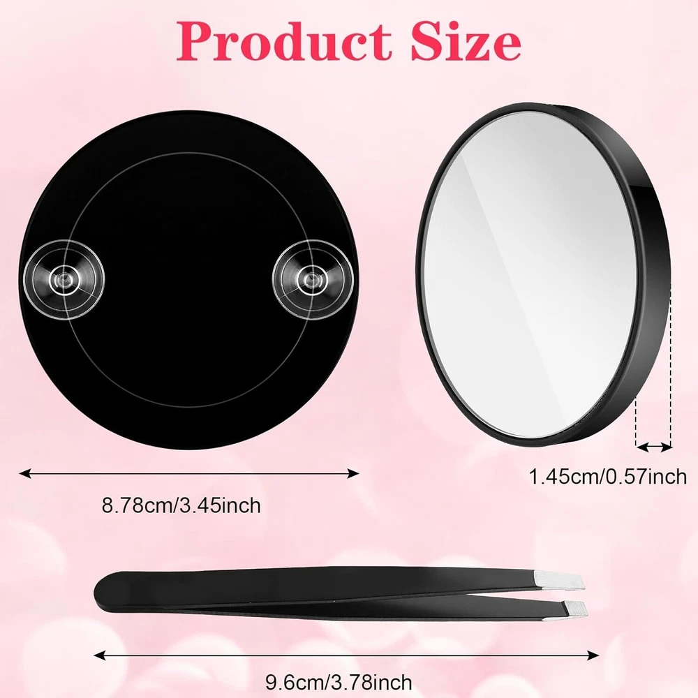 cobee Magnifying Mirror,30X Handheld Mirror with Suction Cup and 1 Black Product Details Brand: cobee Room Type: Magnifying Mirror Shape: Round Product Dimensions: 7.87"L x 3.93"W Frame Material: Acrylonitrile Butadiene Styrene (ABS) Style: Modern Mounting Type: Mirror Finish Type: Magnifying Mirror Surface Recommendation: Glass Special Feature: Magnifying Color: Black Theme: Travel Specific Uses For Product: Hair Styling Number of Pieces: 1 Number of Items: 2 Material: Stainless Steel, Glass, Acrylonitrile Butadiene Styrene Frame Type: Framed Item Weight: 1.36 Ounces Assembly Required: No Frame Color: Black Magnification Maximum: 30 x Manufacturer: cobee Item Weight: 1.36 ounces Country of Origin: China Item model number: 570234_1_16yuDJ4Hk Magnification for Your Beauty Needs: The power of the 30x magnifying mirror, is your go-to tool for tackling various makeup and skincare challenges effortlessly. With its incredible magnification, this mirror allows you to inspect clogged pores, remove blackheads, shape eyebrows and beards, check your skin's condition, and inspect makeup application with utmost precision. Say goodbye to any beauty concerns and hello to flawless results! Portable and Compact for On-the-Go: Measuring a mere 8.78x8.78x1.45cm/3.45x3.45x0.57in and weighing just 39g/1.36oz, our small travel magnifying mirror is lightweight and exceptionally portable. It easily fits inside makeup bags, pockets, and handbags, making it the perfect travel companion for situations such as fitness routines, bathroom touch-ups, and more. Take it with you wherever you go and enjoy the convenience and versatility it offers. Secure Placement with Double Suction Cups: Our magnifying mirror suction cup features two detachable suction cups on its back, ensuring a secure and reliable placement on smooth surfaces like mirrors or glass. Experience no hassle or slipping while using the mirror, as these cups possess perfect suction force. Enjoy peace of mind knowing that the suction cup mirror will stay in place, allowing you to focus on your beauty routine. Stainless Steel Tweezers for Precision Hair Removal: In addition to the magnifying mirror, this 30x set includes top-quality stainless steel tweezers. Suitable for both men and women, these tweezers are perfect for precise hair removal. Whether it's shaping eyebrows, defining eyelashes, grooming beards, or removing unwanted facial hair, these tweezers will provide you with the precision you need. Achieve that perfectly groomed look effortlessly. The Perfect Gift for Beauty Enthusiasts: Packaged in a simple white box, our mirror travel with stainless steel tweezers makes for an excellent gift choice on special occasions such as Mother's Day, Valentine's Day, birthdays, or Christmas. Whether for makeup enthusiasts or anyone who values flawless beauty routines, this gift will surely impress. Treat your loved ones to the ultimate beauty tool that they will appreciate and cherish. Package:1 x Mirror1 x TweezersSpecifications:Mirror specifications: 30 times magnificationUsing distance: 2.5-5cm/1-2inInstallation method: suction cupTweezer specifications: oblique mouthSize Detail:Magnifying glass: 8.78x8.78x1.45cm/3.45x3.45x0.57inTweezers: 9.6x0.55x0.98cm/3.78x0.216x0.385inColour: BlackMaterial: Glass + ABS + Stainless SteelFeatures:1. Circular design: The mirror adopts a circular design, with a simple and elegant shape. The round mirror can better show your facial features and contours, allowing you to apply makeup and retouching more accurately2. Bathroom suction cup design: The mirror adopts a bathroom suction cup design that can be firmly adhered to the bathroom mirror or glass. The suction cup has perfect adsorption force to ensure a stable and reliable fixing position, allowing you to use it with more confidence.3. The bevel tweezers are made of high-quality stainless steel, which has high hardness and durability. The bevel angle of the bevel tweezers can better match the natural grip angle of the fingers, making the operation more convenient and comfortable. You can more easily control the tweezers and accurately capture and treat hair in the target area. Angled tweezers are a practical auxiliary tool.