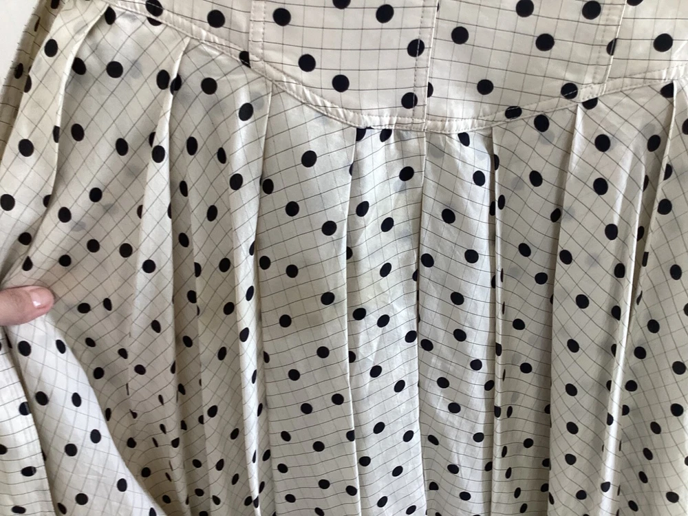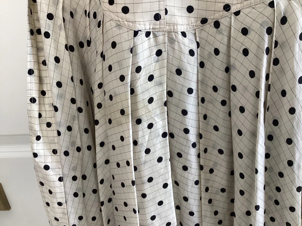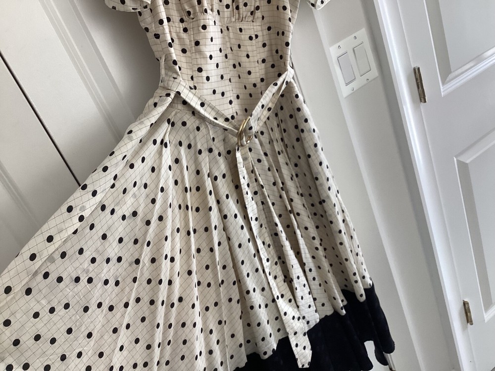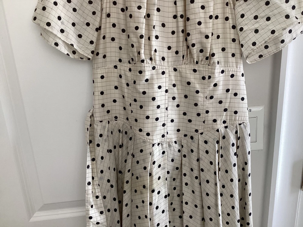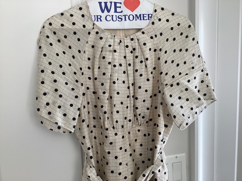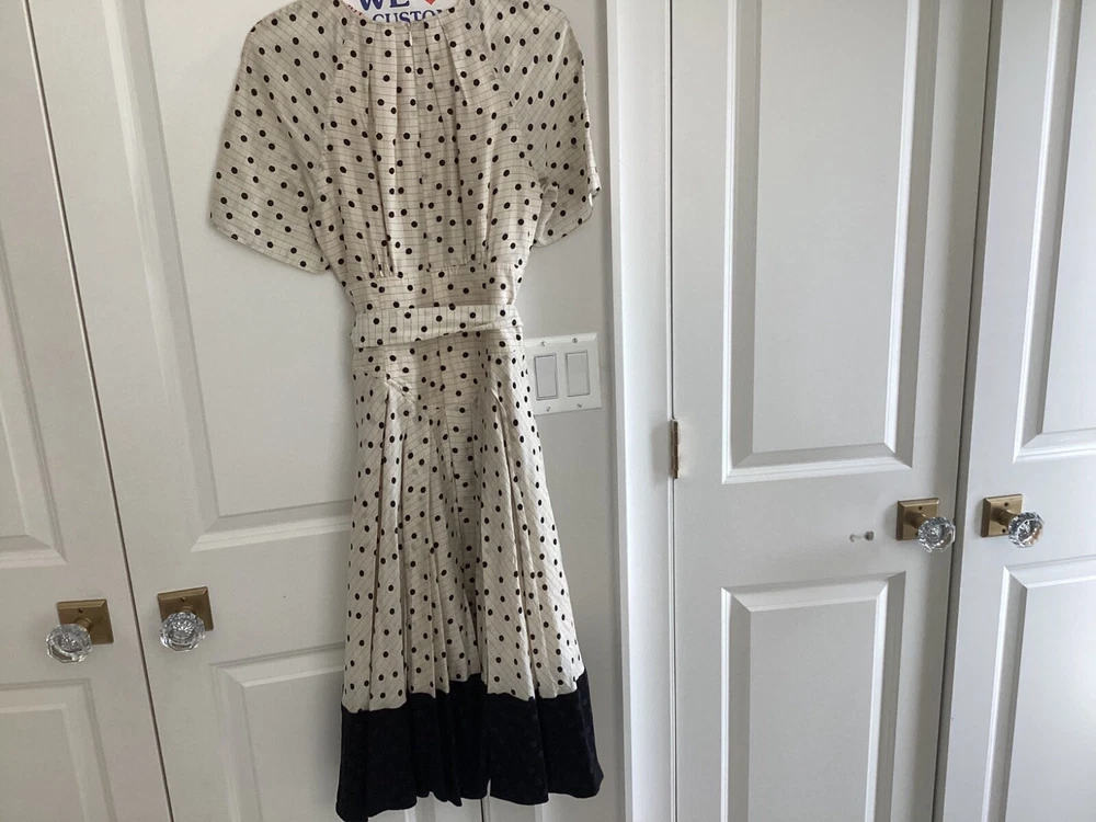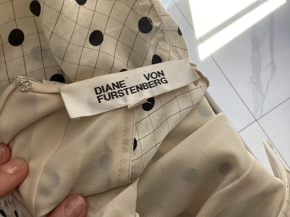 The Diane Von Furstenberg cream and black polka dot silk dress is a sophisticated and stylish option for various occasions such as weddings, parties, and formal events. Made from luxurious silk fabric with a satin texture, this midi-length dress features a round neckline, short sleeves, and a flattering polka dot pattern in ivory and black. With the iconic Diane Von Furstenberg brand name, this dress is designed for a size 4 regular fit, making it a chic and elegant choice for women looking to make a statement at their next event.
