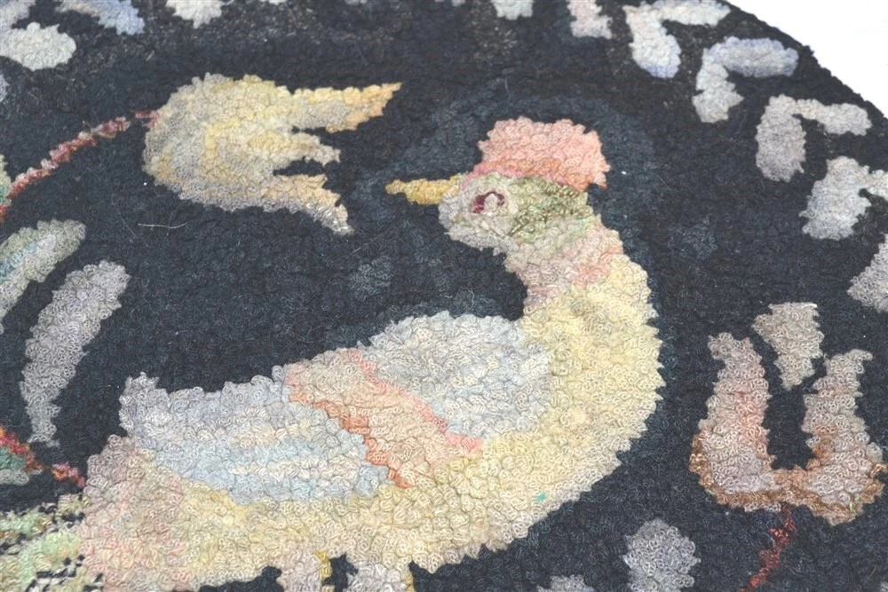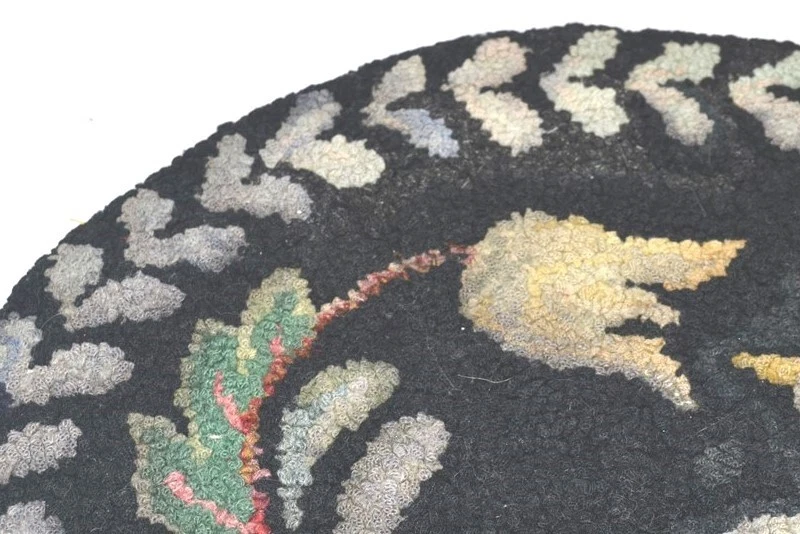 early hooked chair pad bird/flowers scene hand cut wool 14 in folk art antique old hand made hooked wool chair pad 1. late 1800s 2. hand cut wool strips 3. original design 4. hooked into burlap 5. no holes, not torn 6. fabric is strong, no rot 7. over all very nice 9. very nice border 10. all over good condition 11. see photo of back approximate measurements 1. 14 in. across x 3/8 in. thick ground advantage shipping and handling in US scroll down for larger photos You may be interested in our other eBay listings . I send a note at the end of the sale with payment information. Payment is expected within 2 days. We ship promptly within 1 day on receipt of payment. All US packages have tracking and are insured. International Buyers We ship international with United States Postal Services. USPS First Class postage and Flat Rate Priority Boxes or Envelopes can now be tracked to some countries . International packages over $100 ship priority or express. Contact us for more information. Import duties, taxes and charges are not included in the item price or shipping charges. These charges are the buyer’s responsibility. Please check with your country’s customs office to determine what these additional costs will be prior to bidding/buying.” . Powered by SixBit's eCommerce Solution