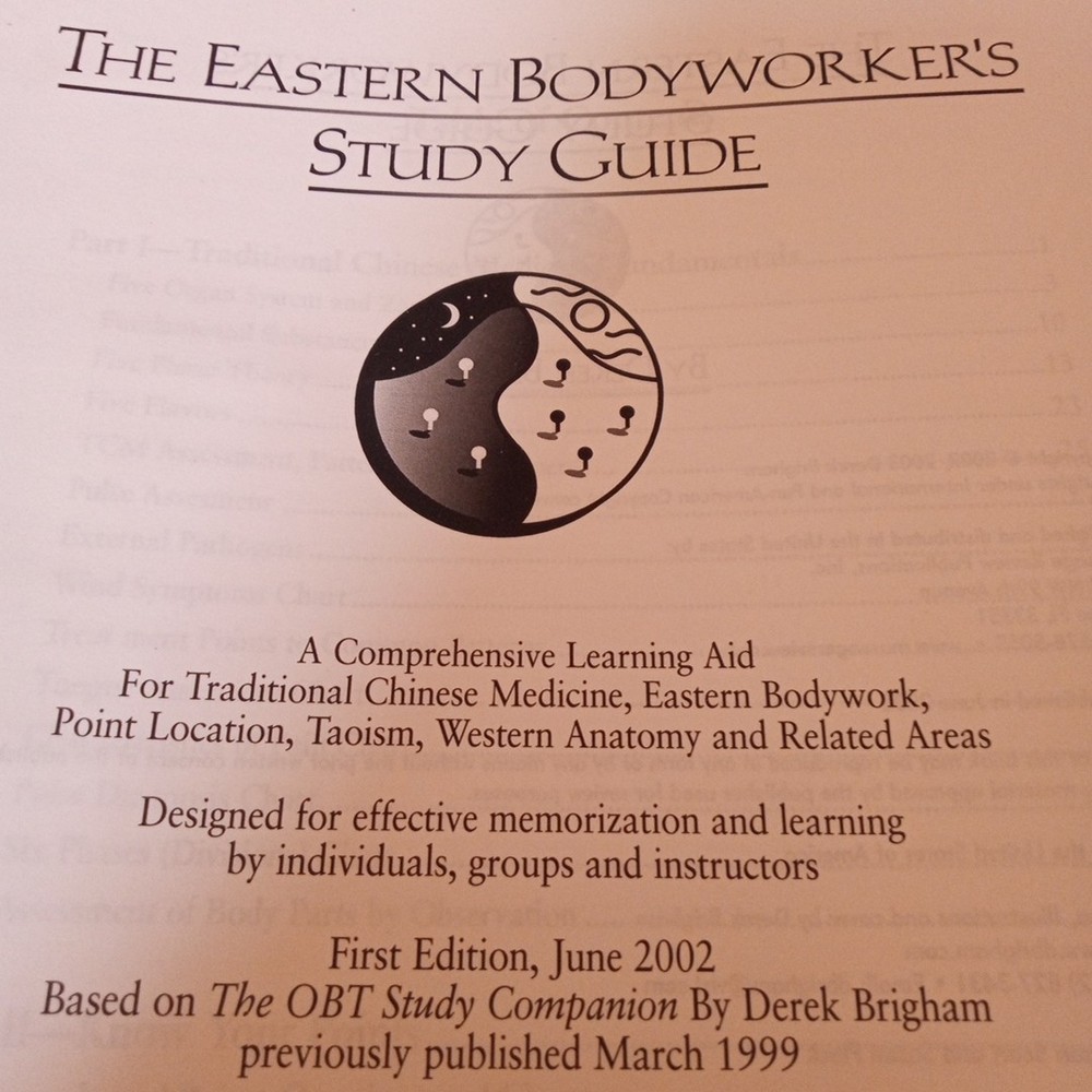 The Eastern Bodyworker's Study Guide, authored by Derek Brigham, is a comprehensive resource for those interested in Traditional Chinese Medicine. This study guide, published in 2003, offers a detailed exploration of energy techniques in an accessible format. With a focus on the principles of Traditional Chinese Medicine, this book is suitable for beginners, intermediates, and advanced learners looking to deepen their understanding and practice in the field. The study guide is ring/wire bound and spiral bound, making it convenient for study and reference purposes. Written in English and originating from the United States, this publication is a valuable tool for anyone looking to enhance their knowledge in the realm of Chinese medicine. The study guide appears to delve into principles of Eastern bodywork, which encompasses a wide range of therapeutic practices originating from Asian cultures, such as Traditional Chinese Medicine (TCM), Ayurveda, and various forms of massage and energy work. These disciplines often integrate physical manipulation with philosophical concepts like Qi (vital energy), meridians, and the balance of Yin and Yang. The cover's imagery, featuring these symbols and figures, strongly suggests a connection to these holistic health traditions. Derek Brigham, as the author, likely presents a curriculum or a comprehensive overview for individuals seeking to learn or deepen their understanding of Eastern bodywork techniques. Such study guides are typically used by students in massage therapy schools, holistic health programs, or by practitioners looking to expand their skill set. The spiral binding suggests it's designed for practical use, allowing it to lay flat for easy reference during study or practice.
