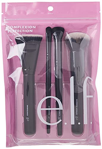 What it is: The complexion perfection brush kit is your secret weapon to a flawless face. This deluxe kit includes; ultimate blending brush; contouring brush; flawless concealer brush; and concealer brush. Why you'll love it: All e.l.f. Professional Makeup Brushes have been designed and tested by our professional team of makeup artists. Each brush is made with synthetic, animal hair-free bristles and is ergonomically designed to fit perfectly into your hand and facilitate an impeccable finish with every application. Ingredients may change or vary from time to time. Please refer to the packaging of the product received for the list of ingredients in your particular product. All e.l.f. products are proud to be 100% vegan, cruelty-free, and Leaping Bunny Certified. Because kindness is chic. BLEND & CONTOUR: This 4-piece face brush kit gives you all the tools to create flawless looks step-by-step. Use these brushes to apply foundation and concealer with ease. WHAT'S INCLUDED: This 4-piece brush set includes an Ultimate Blending Brush, Contouring Brush, Flawless Concealer Brush and Concealer Brush. MADE WITH SYNTHETIC BRISTLES: Made with 100% synthetic, cruelty-free bristles. SKIN-LOVING INGREDIENTS: All e.l.f. products are made from skin-loving ingredients you want, minus the toxins you don’t—all at good-for-you prices. All e.l.f. products are 100% cruelty-free and vegan. VEGAN & CRUELTY-FREE: 100% vegan, e.l.f. is double-certified cruelty-free by Leaping Bunny & PETA.
