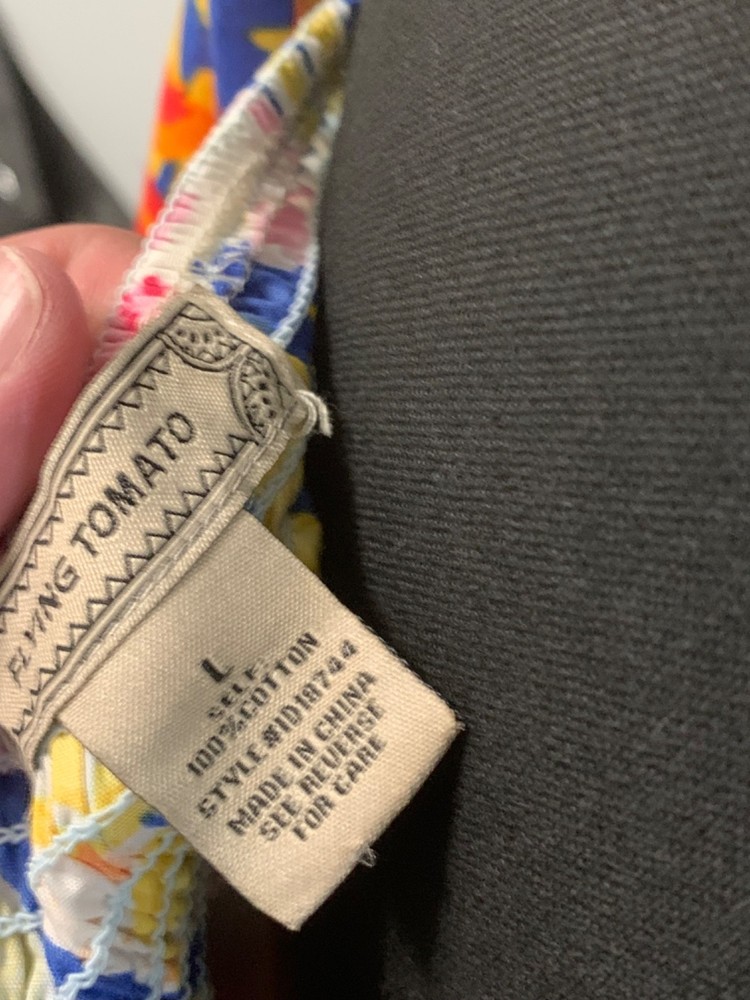 The Flying Tomato dress in size L is a colorful and playful mini dress designed for women. With a short dress length and vibrant multicolor design, this dress is perfect for those looking to make a bold fashion statement. The regular fit and stylish design make it a versatile piece that can be dressed up or down for various occasions. The Flying Tomato brand ensures quality and attention to detail in this fun and trendy dress.