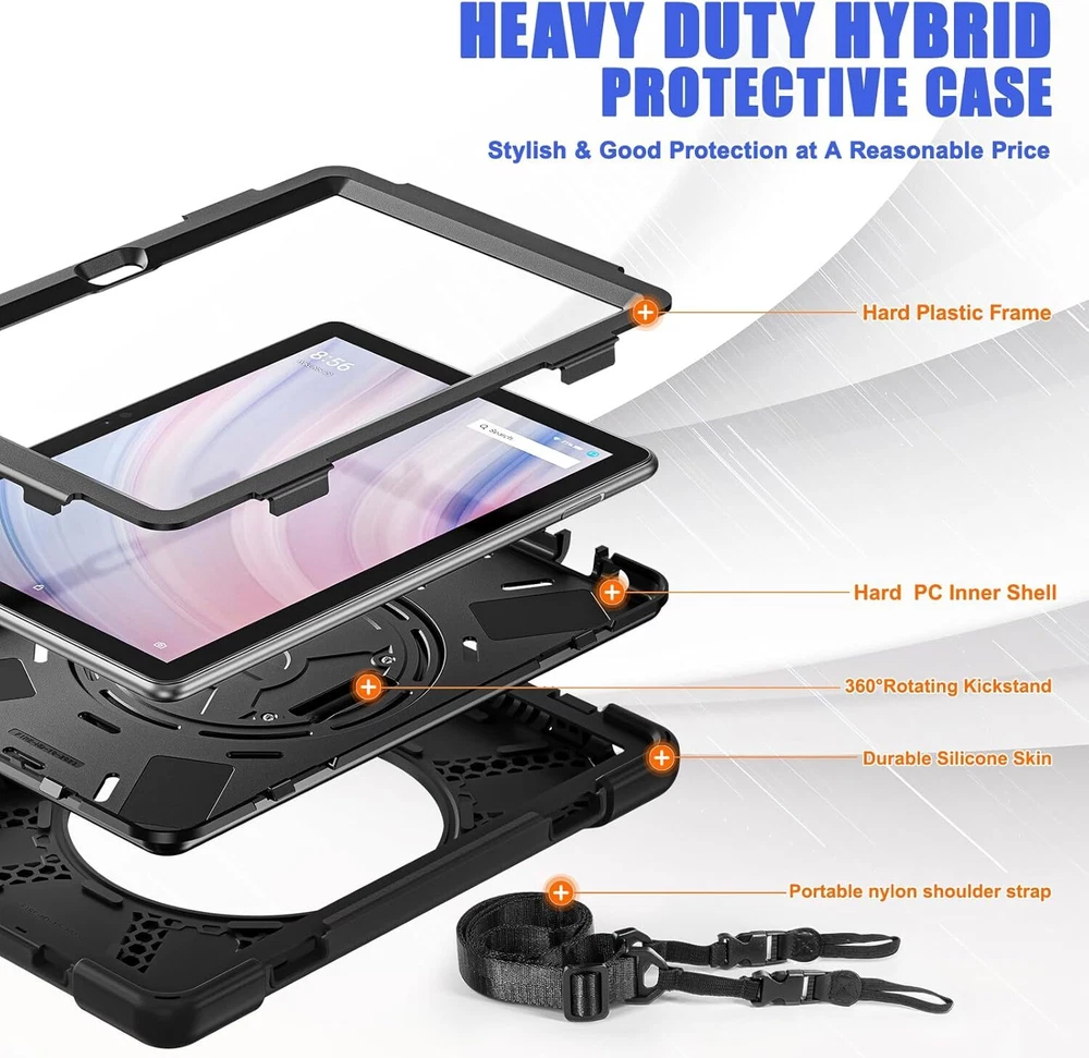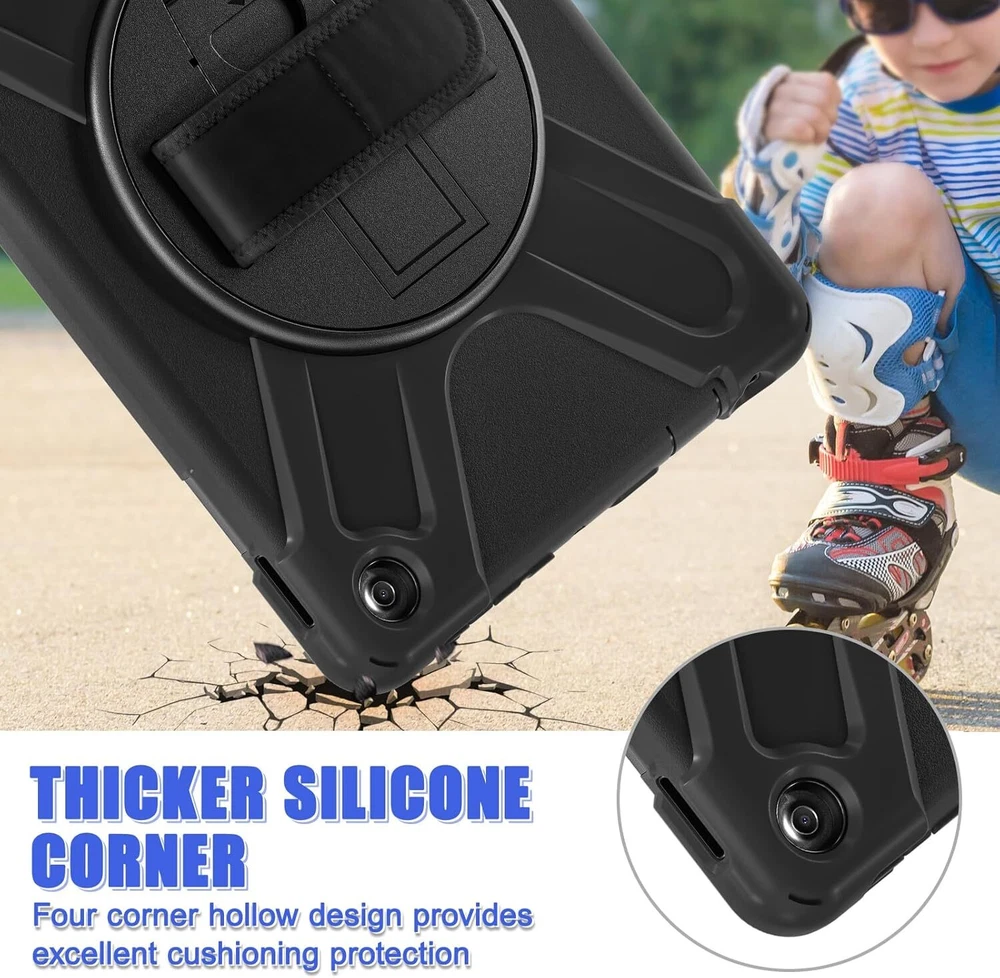 forFire HD 10 & 10 Kids Pro Tablet 10 2023, Black Product Details Brand: PboyiqiS Color: Black Compatible Devices: Fire HD 10 2023 Form Factor: Case Shell Type: Soft ◆◆◆【Full Body 3-Layer Protection】 Three layer structure design, providing full body protection prevent from drops, shocks, bumps, scratches and dirt. No worry your Fire HD 10 would slip out of your kids' hands and break. Full access to all ports, buttons and cameras without removing the case. ◆◆◆【Amazing Mul-tifunction Handle-Kickstand】The 360 Degree rotating Kickstand provides multi-angle viewing, offering a pretty convenient use experience for film watching, working and typing. The stand is stable enough on several different surface. Open as a comfortable handle for gripping and carrying. ◆◆◆【Removable & Adjustable Carrying Strap】 Portable Shoulder Strap allows to carry your Fire HD 10 conveniently when you are at work, on a trip or outdoors. You could even hang it behind the head rest of car seat or wherever you want. ◆◆◆【Friendly Kids Case】 Made entirely of kid-safe and non-toxic EVA foam rubber material, Material can withstand considerable wear and tear and provide extreme shock protection,Super light weight and durable hazard free safe material perfect for kids and grownups alike. ◆◆◆Compatibility ◆Designed for Fire HD 10 13th Generation 10 inch 2023 Release. ◆Designed for Fire HD 10 Kids 13th Generation 10 inch 2023 Release. ◆Designed for Fire HD 10 Kids Pro 13th Generation 10 inch 2023 Release. ◆◆◆Rugged Shockproof Case for Fire HD 10 2023 ◆ 360° Rotating Kickstand can provide a stable support ,infinite viewing angle and free your hands. ◆The folding handle is perfect for slippery fingers to grip and carry. ◆◆◆HIGHLIGHTS ◆Easy for life on the go The folding handle is perfect for slippery fingers to grip and carry. The folded handle will not make the whole case too bulky to put in a backpack of the usual size. ◆360° Free Rotatable/Multi-angle Kickstand Rotatable stand supports landscape and portrait mode and comfortable typing angle. The 360 Degree rotating Kickstand provides multi-angle viewing, offering a pretty convenient use experience for film watching, working and typing. ◆Adjustable & Detachable Carrying Strap Portable Shoulder Strap allows to carry your tablet conveniently when you are at work, on a trip or outdoors. You could even hang it behind the head rest of car seat or wherever you want. ◆Drop Protection Reinforced Drop Protection. High-performing impact materials. The raised edge and 4 corners protection design can maximize protect your tablet, against accidental drops, shocks, and scratches.