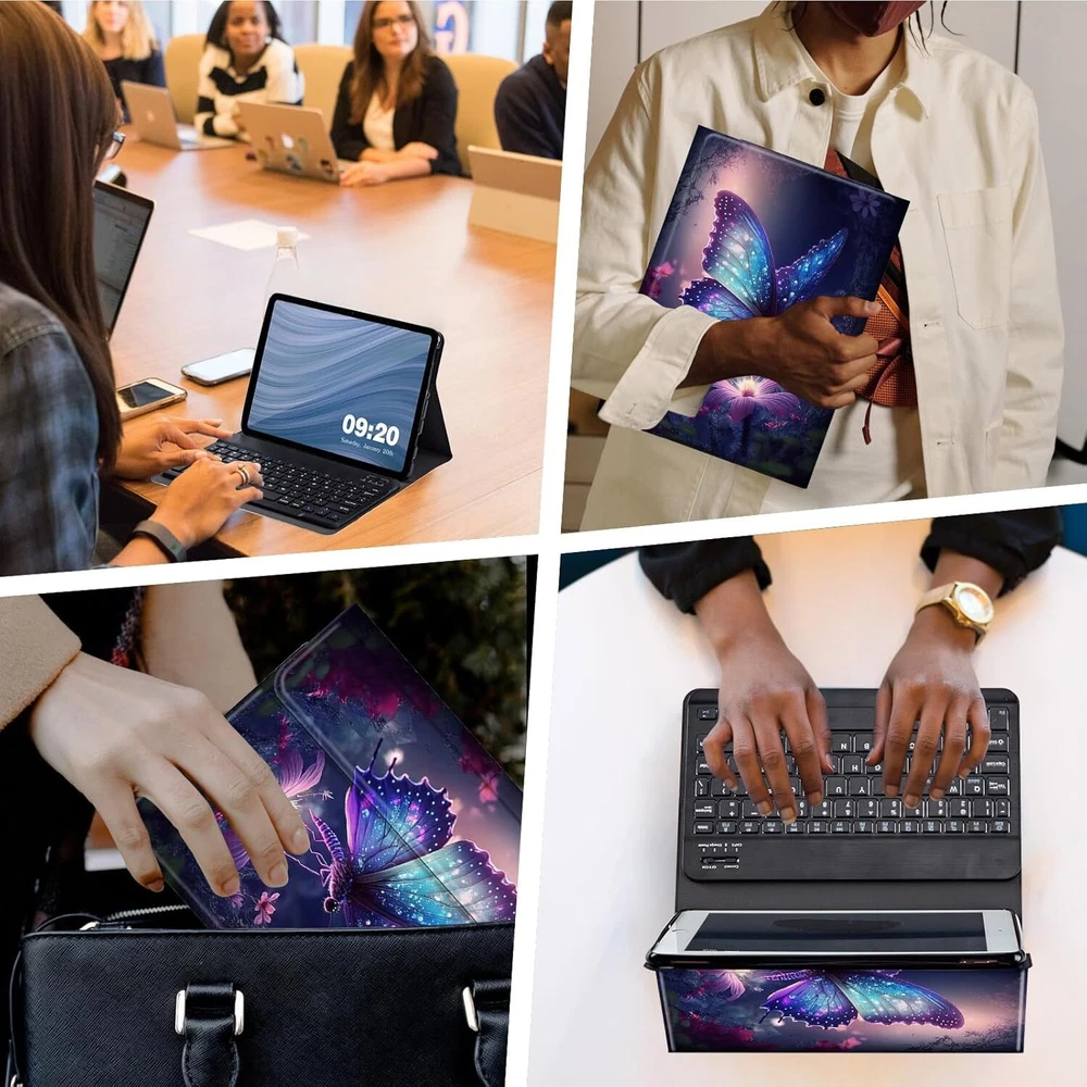 forFire Max 11 Keyboard 11 11", Glowing Purple Butterflies Product Details Product Dimensions: 9.79 x 6.44 x 0.3 inches Item Weight: 11 ounces Manufacturer: RMJKXQZG Item model number: Fire Max 11 (2023, 13th Gen) Is Discontinued By Manufacturer: No Brand: RMJKXQZG Connectivity Technology: Bluetooth Keyboard Description: Flexible Color: Glowing Purple Butterflies Style: Modern Product Dimensions: 9.79"L x 6.44"W x 0.3"H Material: pu leather Included Components: USB Cable Thoughtful Design: Built-in pencil holder is convenient to store and carry stylus pen for tablet to avoid the risk of losing the pencils; The fire max 11 Case with keyboard contains a non-slip lining and supports a multi-view bracket,allowing you to adjust the viewing angle as you like while keeping your tablet stand steadily; The detachable keyboard allows you to easily switch between laptop and tablet mode; This tablet case with keyboard has a magnet so the keyboard doesn’t move when typing. Heat Release & Full Protective: This tablet case for Fire Max 11 comes with honeycomb grid pattern design is better for heat release. The honeycomb cooling design keeps your tablet at the healthiest temperature. Thoughtful design to effectively extend life of your beloved tablet. Hard PU leather shell and soft flexible TPU bumper shock absorbtion give comprehensive protection for your kindle fire 11 model from scratches and damage. ★★★About The Product★★★ ♥The super-strong magnet ensures that the keyboard doesn't move while typing. ♥Honeycomb grid pattern design is better for heat release. ♥Supports multiple viewing angles while keeping the tablet firm. ♥Thin and light doesn't take up much space. ♥Super magnetic, won't fall off when lifted. ♥Built-in pencil holder is convenient to store and carry tablet Pencil. ♥The keyboard connection is pretty much immediate when you turn it on. ♥Detachable design allows you to easily switch between laptop and tablet mode. It is a very functional and practical design that can be used in the office or at home! ★★★Package Included★★★ ---1 X tablet keyboard case for 10th Generation 2022 ---1 X Operating manual for bluetooth keyboard ---1 X Charging cable for bluetooth keyboard ★★★Please Note★★★ ---This tablet keyboard case only for tablet 10th 10.9” 2022(Model Number: A2696/A2757/A2777). Not suitable for other tablet Tablets. ---There may be color differences due to light intensity and screen resolution. ★★★After-sales service★★★ We sincerely invite you to leave your usage experience to share with other customers! Also please do not hesitate to contact us if you have any questions about this case. We will get back to you within 24 hours.