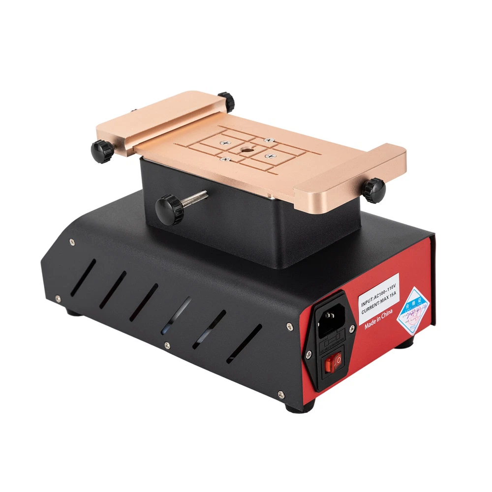 for Cell Phone 7'' LCD Screen Separator Reparator Glass Repair Machine Hot Plate Description This is an easy-to-operate LCD screen separator machine that allows you to easily separate the glass from the LCD. It is made of high-quality iron and aluminum which is durable and has a long service life. This LCD screen separator machine is an ideal choice for DIY projects and cellphone repair shops. Specification Material: Iron, Aluminum Color: Black, Red Mounting Type: Free Standing, Tabletop Input: AC100-110V Power: 250W Plug Type: US Plug Applicable Cell Phone Screen: 7 inches or Less Temperature Range: 40-120℃/104-248℉ Product Size: 13.5*24.2*14.2cm/5.31*9.52*5.59in Heated Surface Size: 19*8cm/7.48*3.15 in Package Size: 32*22*18cm/12*8.66*7.09in Net Weight: 2.6kg/5.73lbs Gross Weight: 3kg/6.61lbs Package Included 1* LCD Screen Separator Machine 1* Power Cord Other Accessories for Assembly Key Features Quality Materials: It is made of iron and aluminum, which is sturdy, anti-wear, rust-resistant, and non-deformation. Strong Suction Power: This LCD screen separator machine has two built-in vacuum pumps that have strong suction power. It can ensure that the phone is steadily adsorbed on the operating table during the screen separation process. 360 ° Free Rotation: The heating plate of this LCD screen separator machine can be 360 ° free rotation which can meet different angles of operation. Efficient Heating Plate: The heating plate of this LCD separator is made of aluminum, which has high efficiency of heat conduction. It has a heating area of 7.48*3.15 inches , which can heat the phone fully and evenly. Temperature Display: The accurate temperature display on the LCD screen can avoid unnecessary loss due to over-temperature. And the adjustable temperature range of 104-248℉ meets your various needs. Space-Saving: The LCD screen separator machine takes up a small area of your space because its size is 9.52*5.31in . A small space on the desktop is enough for it. Details Anti-Slip Footbeds : The four anti-slip footbeds on the bottom keep the machine stable while using it. Screw Rotation: The humanized large screw will not hurt your hands during rotation to enhance safety. Dual Side Ventilation Holes: The ventilation holes on both sides of the machine can effectively relieve the high internal temperature of the body and prolong the service life. Rear Fuse: The rear safety fuse can effectively prevent product damage to extend its service life. Application It is suitable for cell phone repair stores for separating glass lenses, touch screen separation, cell phone glue removal, etc. It's suitable for phones under 7 inches. Operation Method 1. Turn on the power: plug the power cord into the power connector at the back of the separator and turn on the power switch. 2. Preset temperature: press the SET key to preset the temperature, press the up-regulation key to set the temperature at about 85 degrees, and press ENT to save. 3. Prepare wire puller: Equipped with a wire puller to separate the screen. 4. Place the silicone anti-slip pad: placed on the panel of the separator, and align the pad with the panel hole position. 5. Screen separation preparation: put the screen to be separated into the center of the panel, press the start button to begin vacuum adsorption, and ensure that the screen is sucked. 6. Start cutting screen: screen preheats for 3-5 minutes to start cutting. 7. After separating the burst screen, turn off the power to separate the machine, if it is dry glue, you can directly tear it down by hand, such as water glue will need to remove with the help of a blade and glue removal solution. Notes Please allow the slight color difference caused by the shooting light and 1-3 cm error due to manual measurement, and make sure you do not mind before ordering. Payment Delivery details Terms of sales About us Contact us Payment We accept ebay payment 。 Fees such as import duties, taxes are not included in the item price or shipping costs. These charges are the buyer's responsibility. Delivery details Shipping: 2-9 working days to: USA Terms of sales We maintain high standards of excellence and strive for hundred percent customer satisfaction. Feedback is very important to us. We hope that you contact us immediately before you give neutral or negative feedback, so that we can address your concerns. It is impossible to address issues if we do not know about them! About us Your satis faction is our ultimate goal. We work hard to earn your trust and future business. Our certified technicians have tested each item before shipping. The unit comes with 1 year limited warranty on all manufacturing defects. a) If you receive a defective item, you may return it or ask for a discount. Please contact us within 14 days after you receive the package. b) What you returned must be intact and in its original packaging as re? u. Customer is responsible for shipping costs of the returned item. c) We will cover the cost of shipping back t with the shipping rate indicated in the registration page. We will send you a new unit or refund the full payment you paid. Thank you. Contact us Business Hour Business Hour: Monday To Friday: 8:30 AM to 5:00 PM (Beijing China time) Due to time zones, our reply to your questions may not be immediately. But within above working time, we will reply your email within 24 hours. If it's non-workdays, please kindly be patient and wait till Monday. Please contact us with ebay message. Please feel free to contact us if you have any questions. Monday To Friday: 8:30 AM to 5:00 PM (Beijing China time) Due to time zones, our reply to your questions may not be immediately. But within above working time, we will reply your email within 24 hours. If it's non-workdays, please kindly be patient and wait till Monday. Please contact us with ebay message. Please feel free to contact us if you have any questions. On Feb 4, 2025 at 21:52:05 PST, seller added the following information: