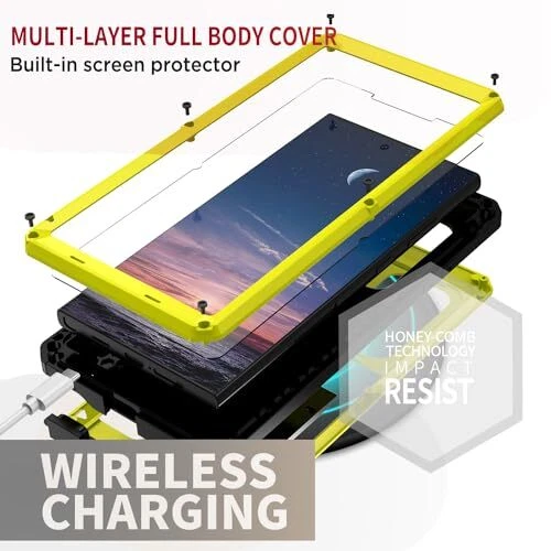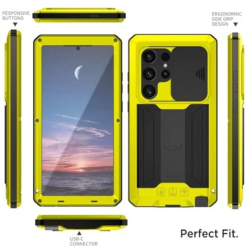 Return Policy Fast Delivery Trusted seller for Galaxy S24 Ultra Metal Case, S24 Ultra Full Body Phone Cover with Built-in Screen Protector & Kickstand & Camera Cover, Anti-Drop Heavy-Duty Rugged Case for Samsung S24 Ultra Yellow Product Description 【Compatible Model】This metal cover ONLY compatible with Samsung Galaxy S24 Ultra (2024 new released). Please check your phone model before buying [Note: It doesn't support fingerprint reader] 【Full-body Heavy Duty Protector】Dual layer silicone, metal bumper and built-in 9H Hardness HD screen rugged metal shell shapes 360 degree protection for your Galaxy S24 Ultra phone, perfect for daily use, outdoor activities or sports. Fingerprints won't work because of the built-in screen protector. 【Military-Grade Drop Protection】Our rugged covers for S24 Ultra offer up to 6 feet drop protection, military-grade high impact shock absorption to protect your phone against accidental drops, bumps, shocks, scratches and any other accidents while maintaining its original response sensitivity. 【Hidden Kickstand, Hands-Free】The Samsung S24 Ultra heavy duty case with stand has a built-in hidden kickstand that leaves your hands free to do other things. The holder on the back of the military armor S24 Ultra military case can provide a good support. Convenient for browsing, watching movies, playing games and chatting with friends. 【Slide Camera Cover Design】This Samsung S24 Ultra military grade case with camera cover operates smoothly and effectively protects your lenses from getting scratched and scuffed, 0.2mm lifted bezel for camera protection. Shipping Returns Payment Shipping Shipping is FREE to all addresses other than APO/PO boxes in the lower 48 states. All our stock ships from US-based warehouses. Shipped via USPS or UPS (depending on location and package weight) Unless stated otherwise, all orders will ship within 24-72 hours of your payment being processed. Check our feedback to see the great reviews of FAST shipping we offer. Returns Seller does not accept returns Payment We currently accept payment via eBay managed payments only. Once payment is cleared, we will dispatch your shipment within 1-3 business days. Please refer to the "Shipping" tab for more information regarding shipping speed to your destination.