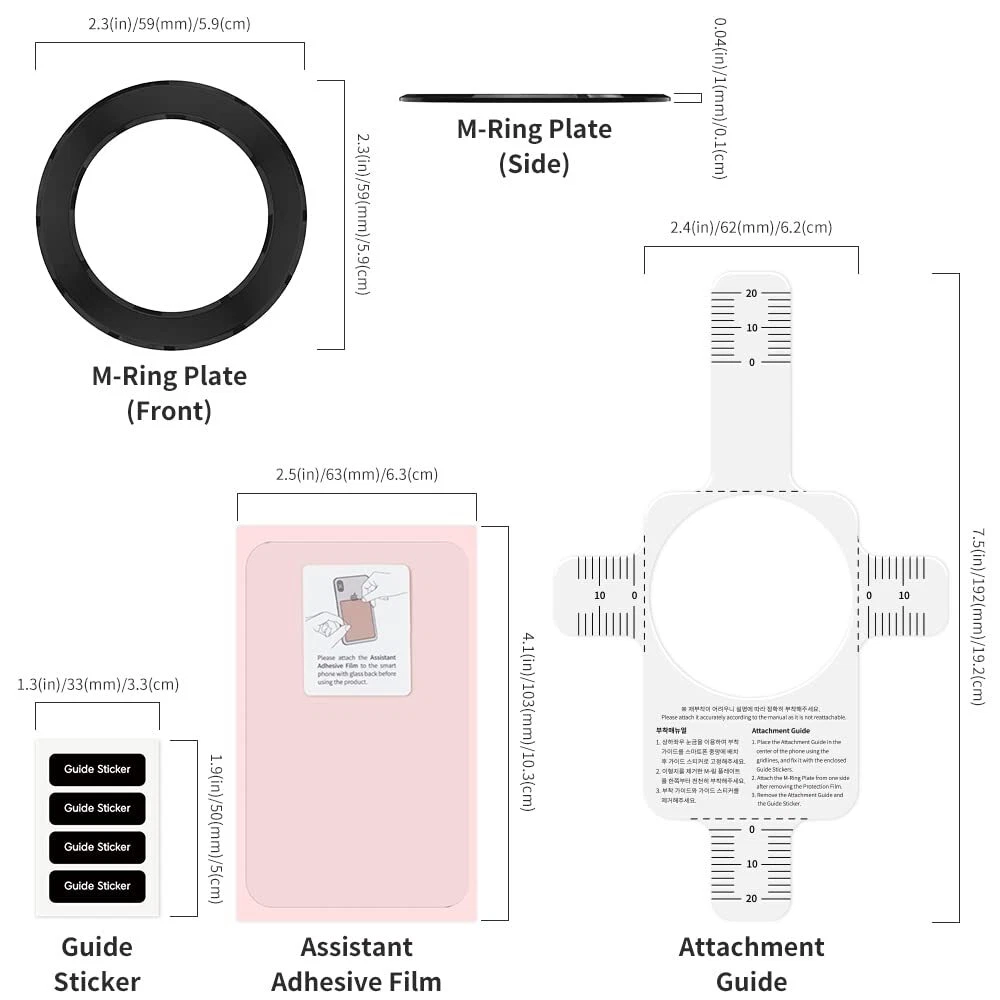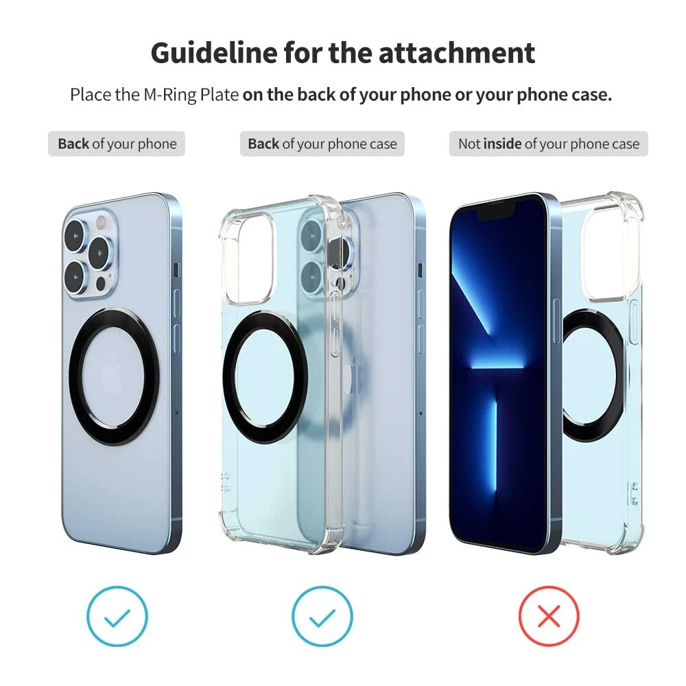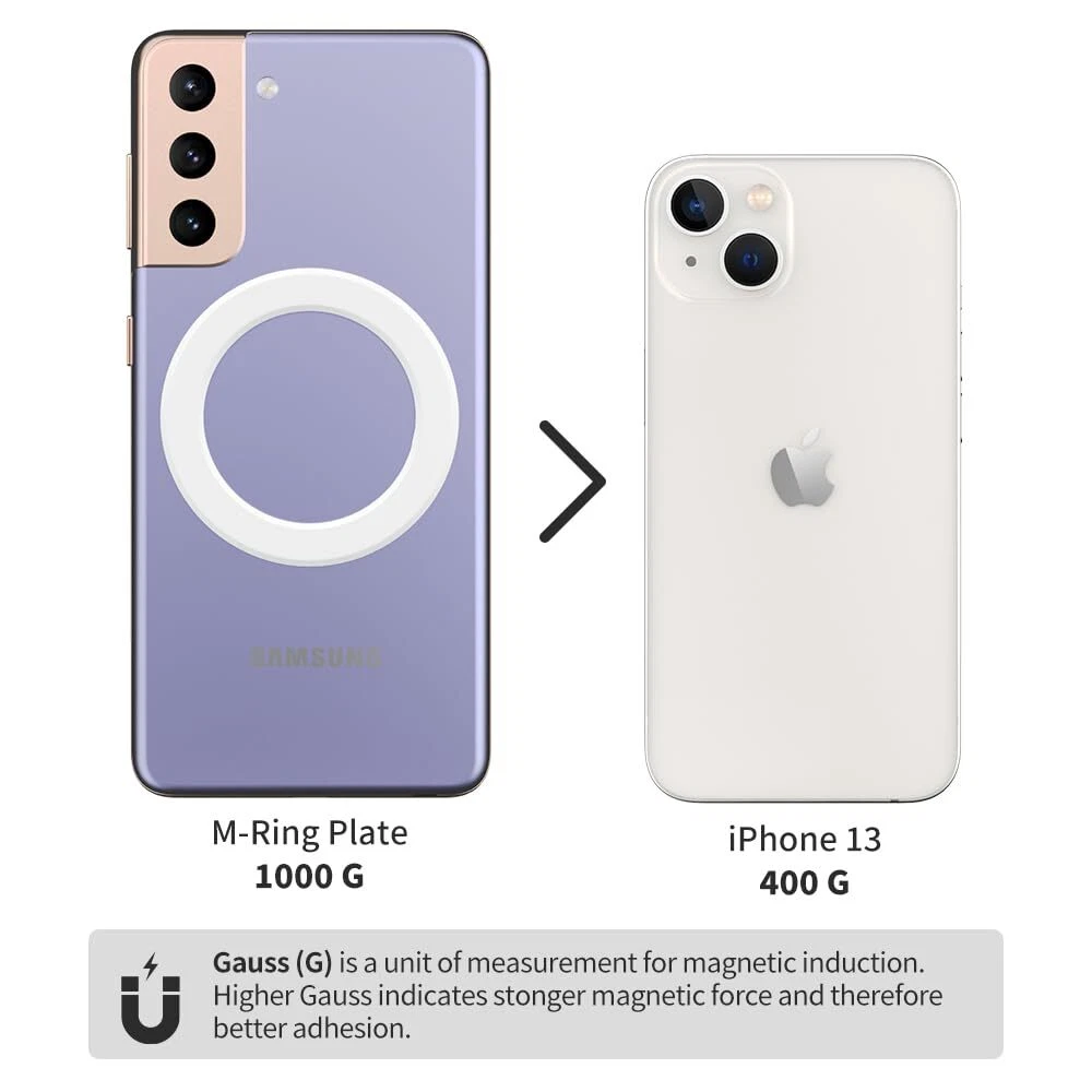 Universal Magnet Sticker for MagSafe Accessories: M-Plate adheres to any type of phone and non-MagSafe phone case. Upgrade your case to MagSafe for stable use with MagSafe accessories. Powerful MagSafe Ring Sticker: M-Plate offers a magnetic force of 1000g, more than twice the strength of iPhone's MagSafe. Only compatible with PC or TPU cases without a fingerprint-resistant coating. Fast Wireless Charging: M-Plate is compatible with wireless chargers and car phone holders. For increased charging efficiency, please watch the video and ensure M-Plate is attached at the correct location. Easy to Install: Attachment Guide Kit is included in the package to enable easy attachment for any type of cell phone, including the Galaxy Z Flip Series. Note: Once installed, the magnetic ring cannot be repositioned. Package & Warranty: Package includes M-Ring Plate x1, Assistant Adhesive Film x1, Attachment Guide x1, Manual x1, and Guide Sticker x1. provides a 90-day warranty for all our products!