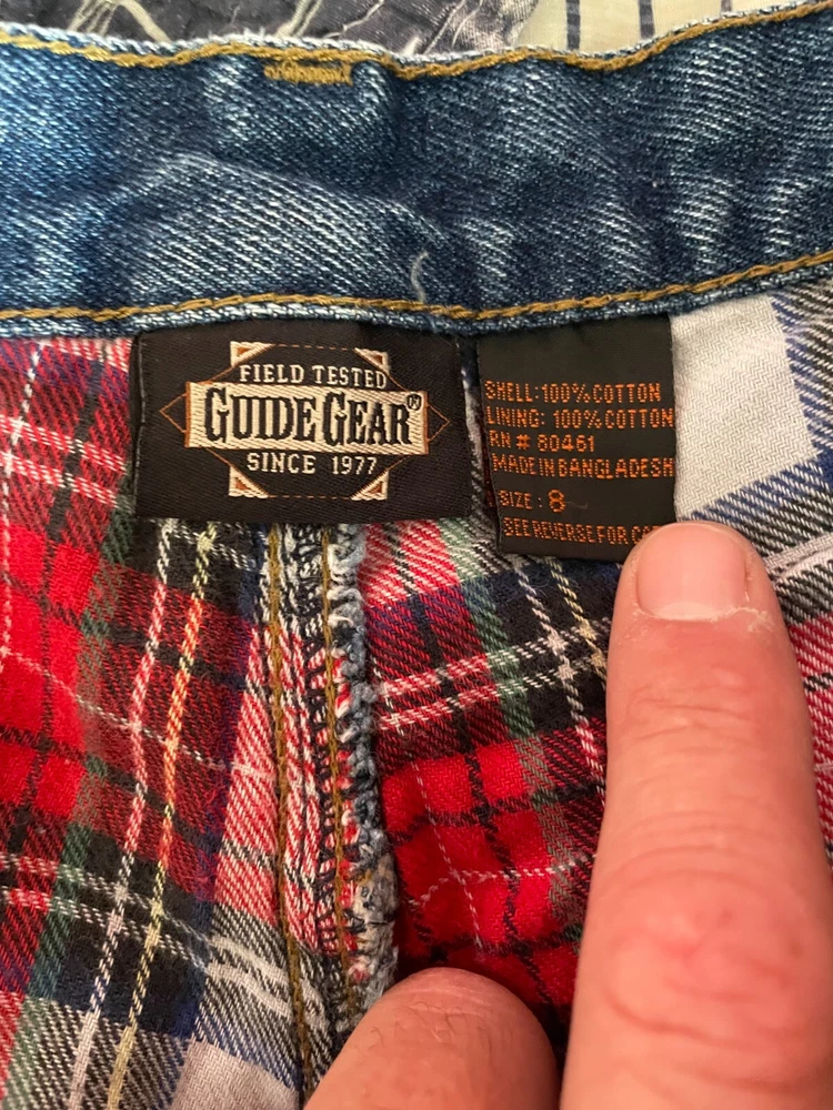 never won, insulated blue jeans, 100% cotton inside. perfect pants.Guide Gear brand size 8