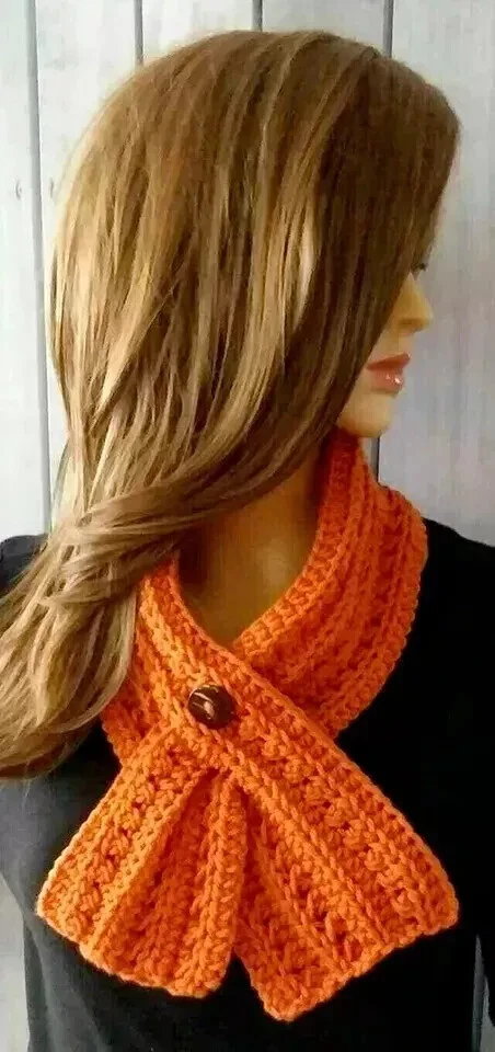 FOR COMBINED SHIPPING PLACE ITEMS IN YOUR CART~ DISCOUNT WILL AUTOMATICALLY COMBINE only one coupon or discount per item Colors may vary with individual screen monitors Keep your neck warm with This beautiful soft handmade crochet keyhole scarf. just slips over your head for easy placement. it is held together in front with a button embellishment. new This is about 37-39 inches long, unstretched, and it about 3 1/2 to 4 inches wide. hand crafted with acrylic yarn. Check out my other items !