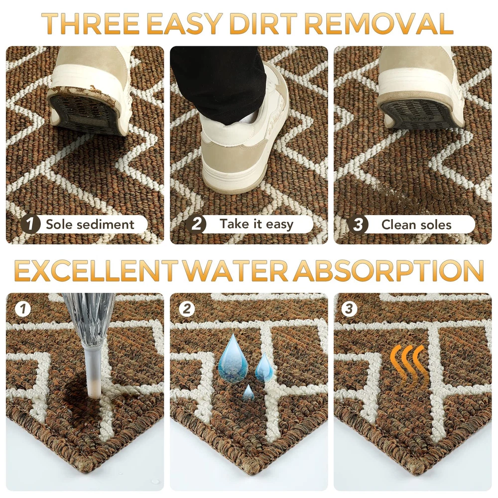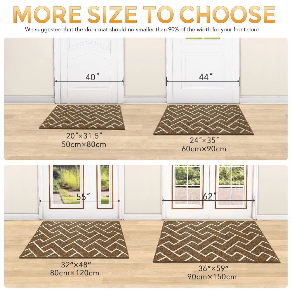 hicorfe Indoor Doormat,36"x59" Front Back Door Entrance Mat,Non Slip Rubber Backing Mats,Absorbent Resist Dirt Entryway Doormat Inside Floor Mats Washable Low-Profile for Kitchen,Patio(Brown) Durable & NON-SLIP: Our Indoor Doormat is made of high-quality absorbent polypropylene fabric, uses double layer technology which absorb moisture and dirt from shoes quickly, makes your floors clean and dry. And the non-skid TPR rubber backing won't scuff floors, perfect for both indoor and outdoor use. LOW PROFILE & FASHION : Our indoor doormat measures 36" x 59" x 0.4", low profile design so doors won't get stuck. They are woven in more stylish colors and patterns to match any décor, making your home more cute and sweet. EASY TO CLEAN: The unique rib fabric design removes dirt from shoes easily. When your doormat gets dirty, first shake it off outdoors or over your garbage bins, then sweep with a broom or vacuum regularly or use a garden hose to rinse the mat outdoors. For deeper clean: machine washable, use water under 86 (℉) / 30 (℃). Do not iron. Do not bleach. Do not expose it to the sun for a long time. WIDE USE: Our doormat widely used for all weather, works as front door mat, outdoor door mat, welcome door mats, indoor mats for entryway, shoe mat, dog doormat, floor mats, ect. It can scrap off dirt, water, dust,grit, sand,mud, slush, sleet, grass or retain, snow. Customer Service: Since the doormat was folded up during transportation, it’s normal to see there will be two creases on the rug. Please lay it flat for 2 to 3 days and wait patiently for its recovery. If you have any problems with the product, you can directly contact us and we will provide a replaced product. Shipping We offer FREE shipping on all orders! We use a selection of shipping services such as UPS, FedEx, USPS etc. We only ship to the lower 48 states, no APO/FPO addresses or PO Boxes allowed. Local pickups and combined shipping options are not provided at this time. Return You can return a product for up to 30 days from the date you purchased it. Any product you return must be in the same condition you received it and in the original packaging. Please keep the receipt. Payment We accept payment by any of the following methods: PayPal Please pay as soon as possible after winning an auction, as that will allow us to post your item to you sooner! Feedback Customer satisfaction is very important to us. If you have any problem with your order, please contact us and we will do our best to make you satisfied. Contact Us If you have any queries, please contact us via ebay. We usually respond within 24 hours on weekdays. Please visit our eBay store to check out other items for sale! Thank you for shopping at our store.