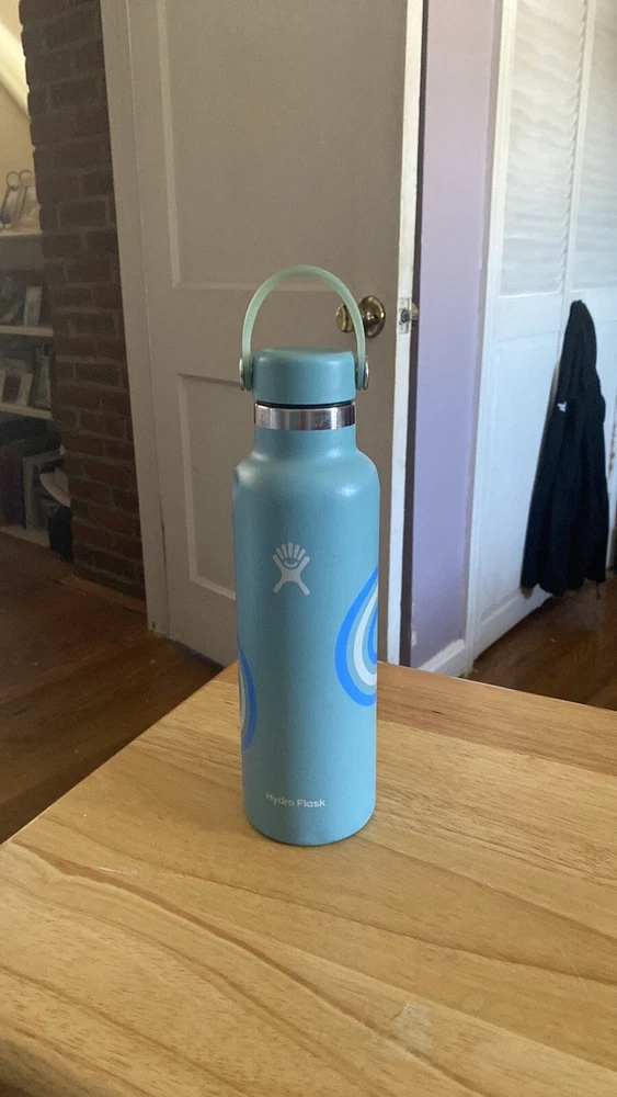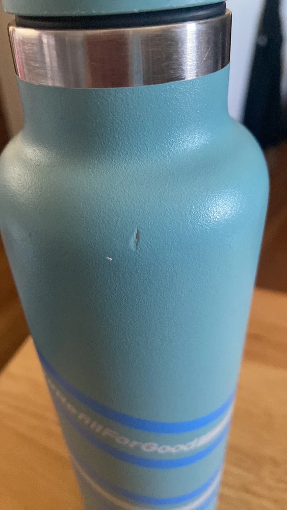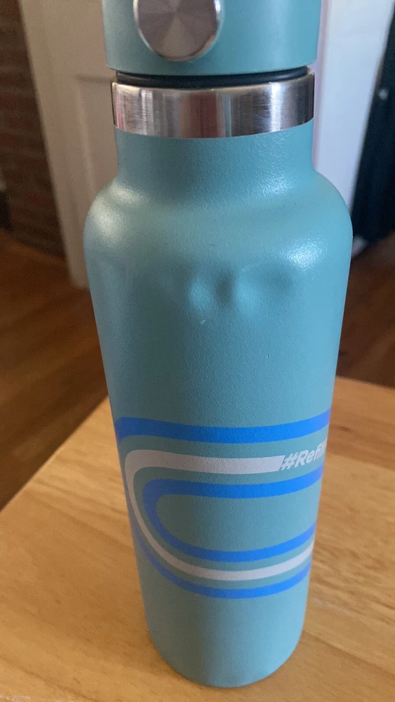Hydro Flask 21 oz standard mouth with flex cap Color blue Several dents and scratches please review pictures Some discoloration on the handle