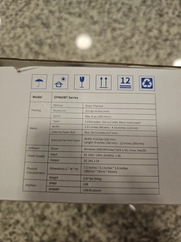 Used, but like brand new. The NEW iDPRT Bluetooth Thermal Label Printer SP460BT is a medium-sized label printer with a sleek dark black color and Bluetooth connectivity. It has a compact package dimensions of 10.71x6.3x6.1 inches and weighs 3.9 pounds, making it easy to transport and use in various settings. The thermal technology allows for quick and efficient printing of 4x6 shipping labels, making it ideal for businesses and individual users who need to label and ship items frequently. The BT brand is known for its quality and reliability, ensuring that this printer is a valuable addition to any workspace.